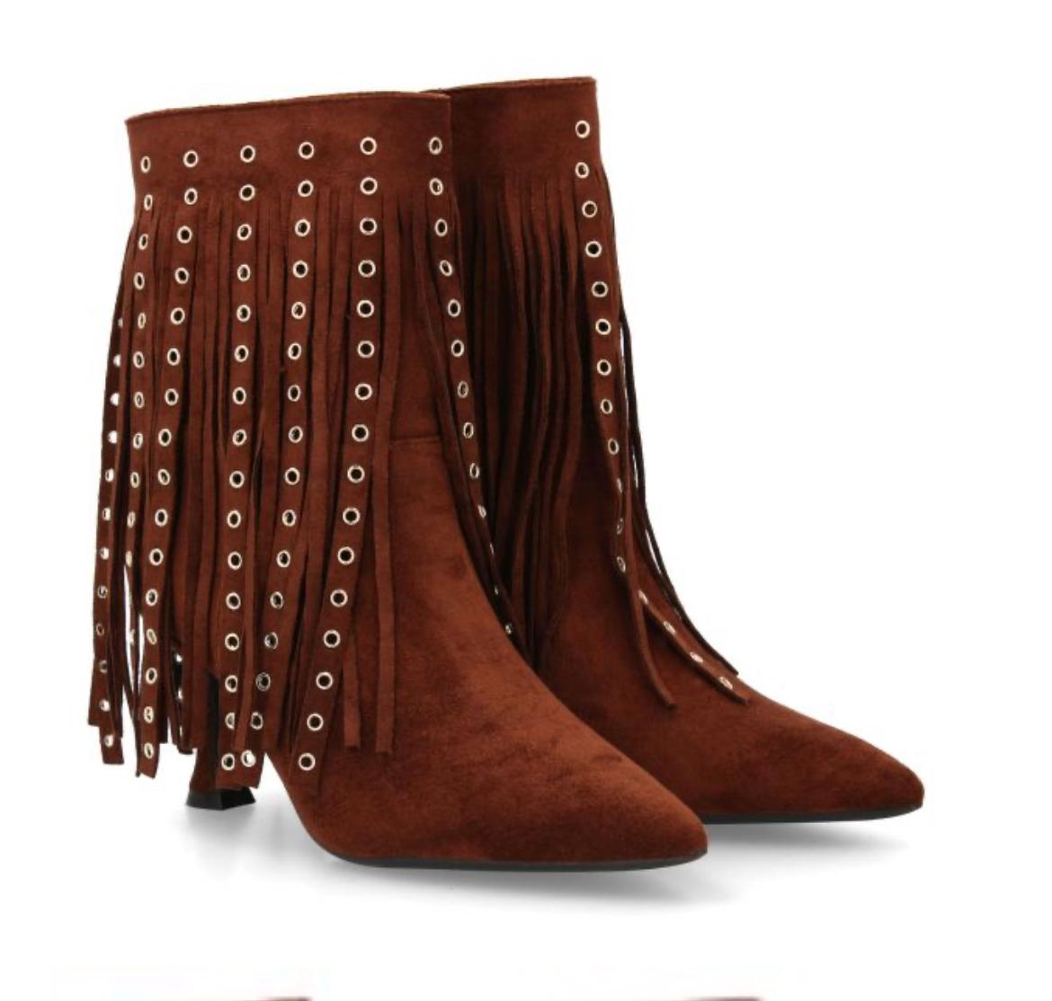 Botines boho marrones con flecos Y tachuelas