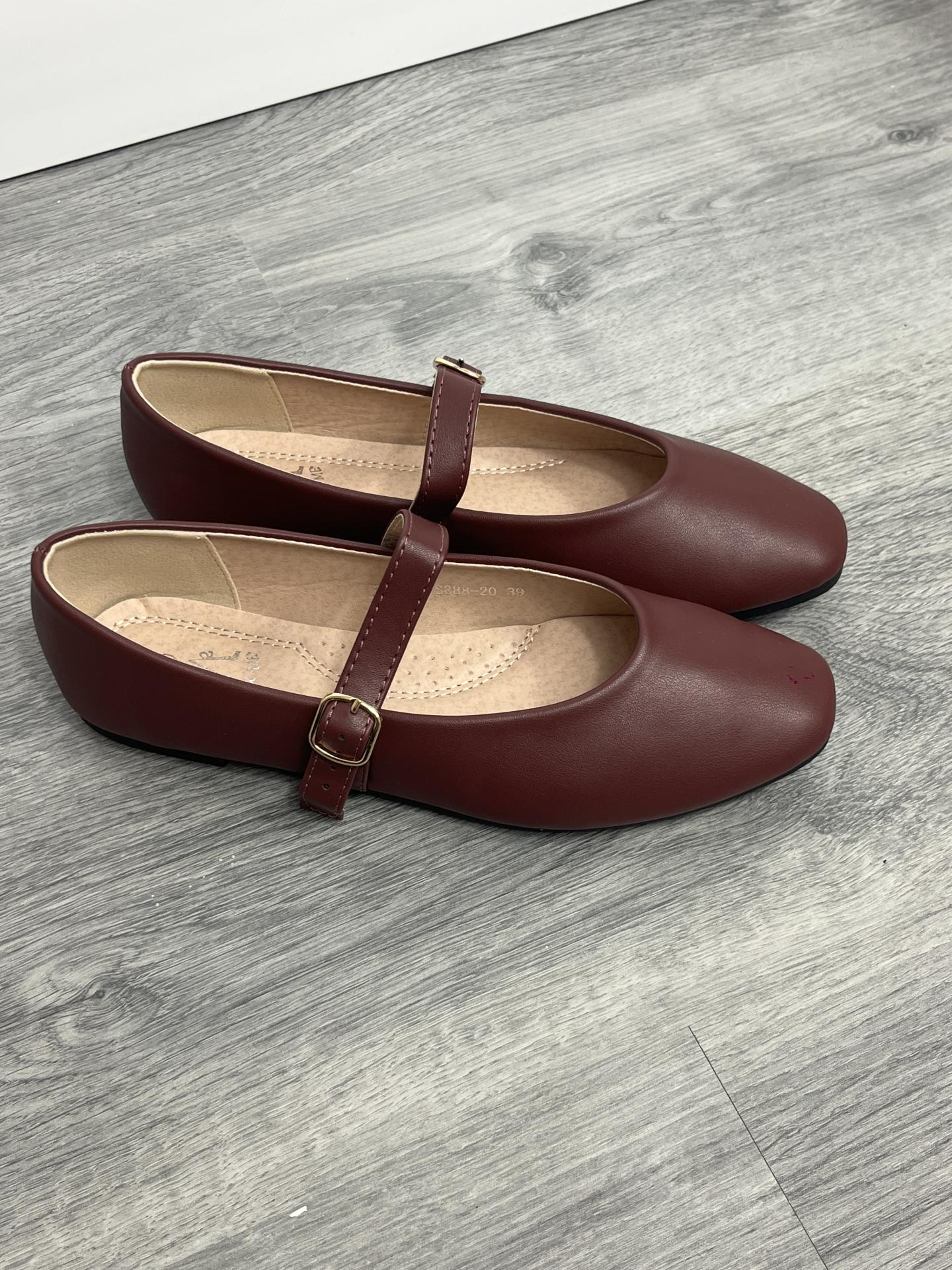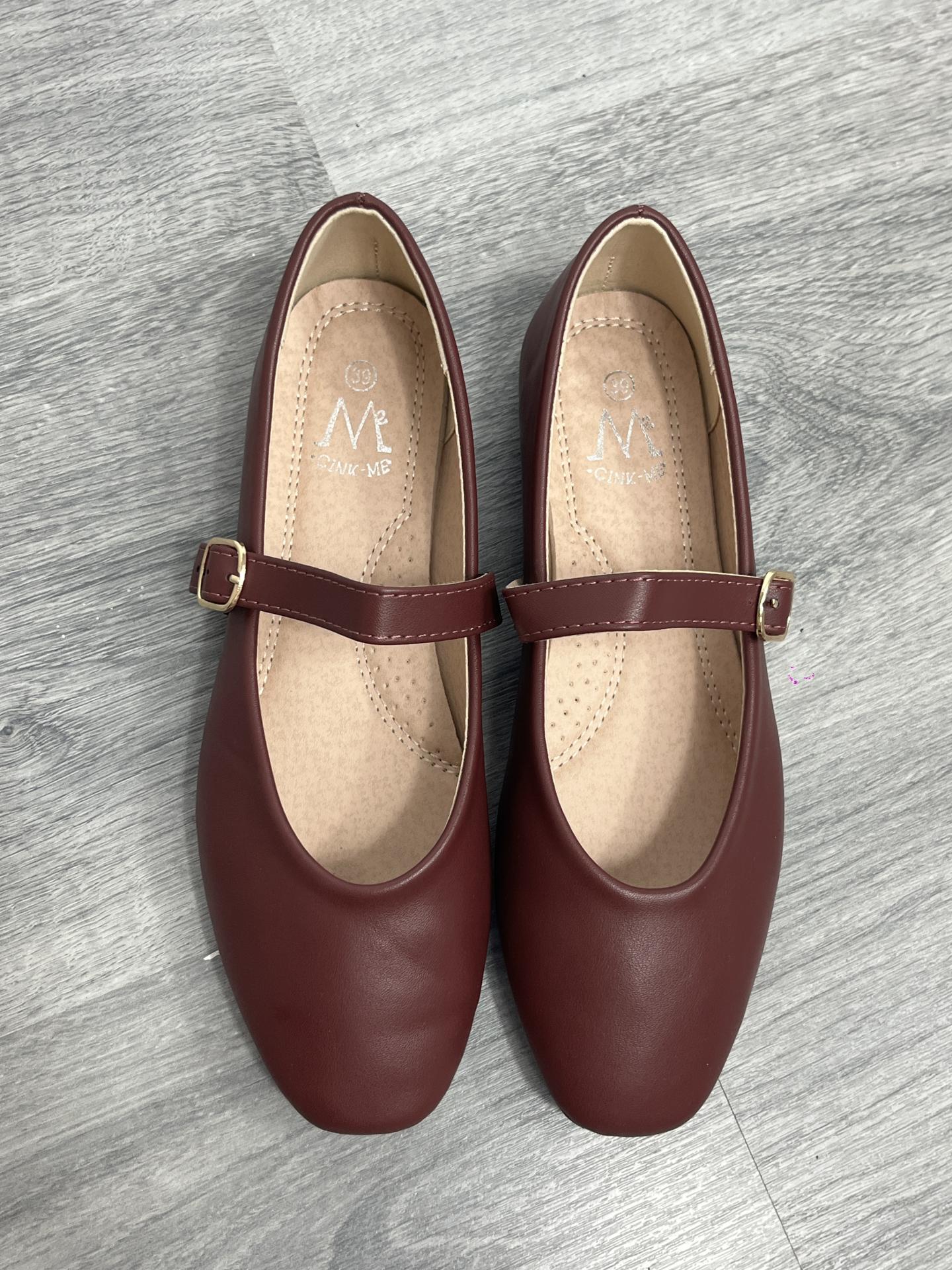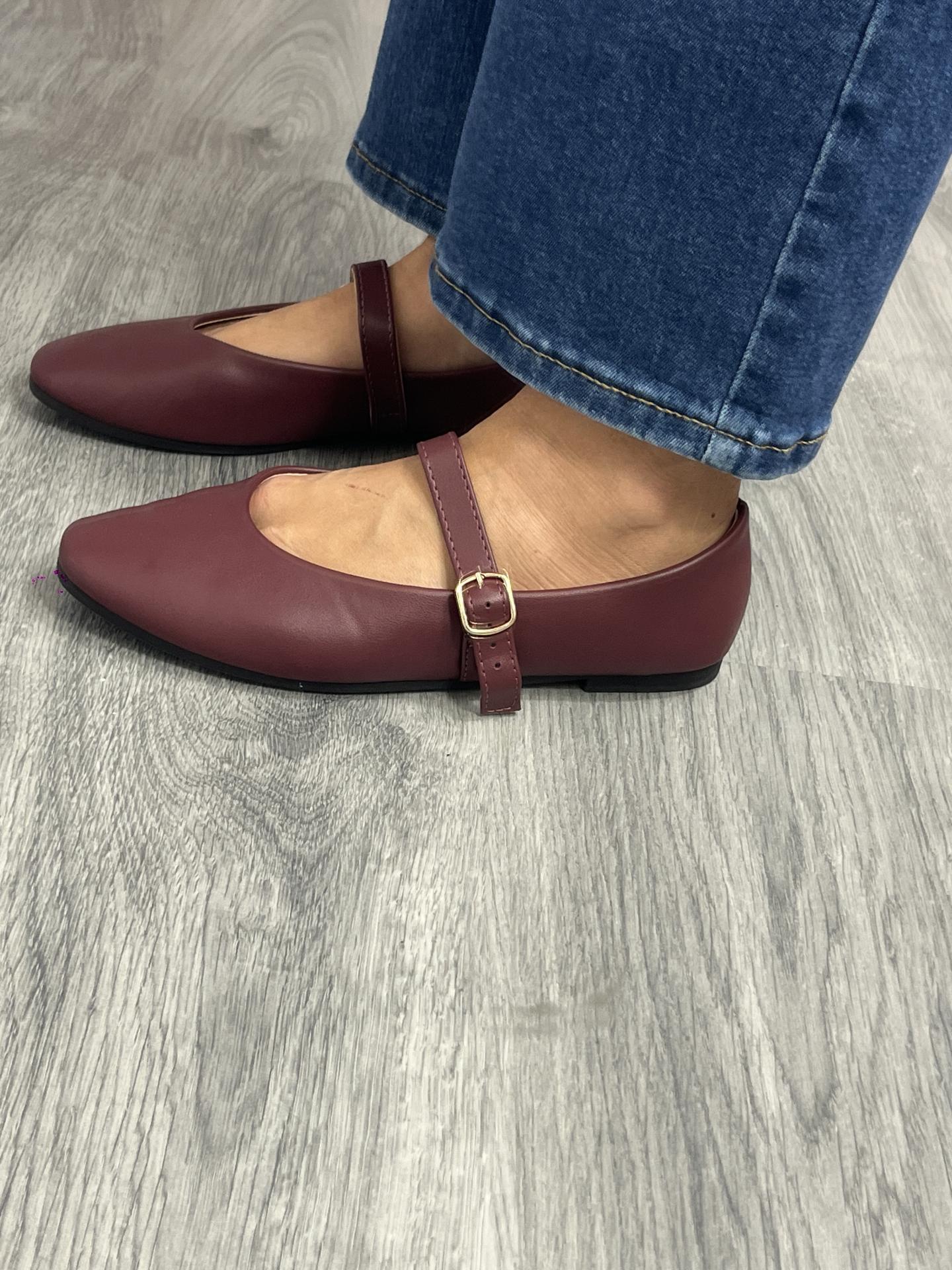 Bailarinas color burdeos para mujer con pulsera ajustable y plantilla acolchada. Calzado plano elegante, cómodo y versátil.