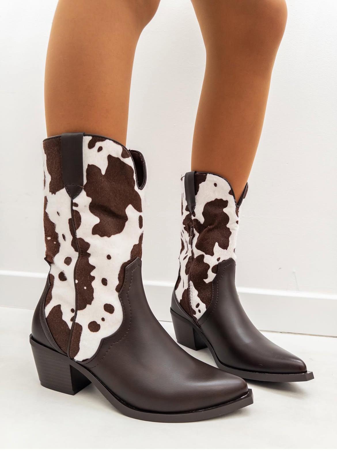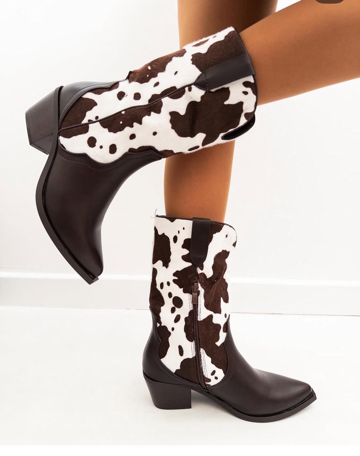Atrévete a destacar con los botines cowboy cow print de Malika, el calzado más deseado de la temporada. Su diseño combina el estilo western con el toque urbano más actual, creando un look potente, moderno y con mucha personalidad.