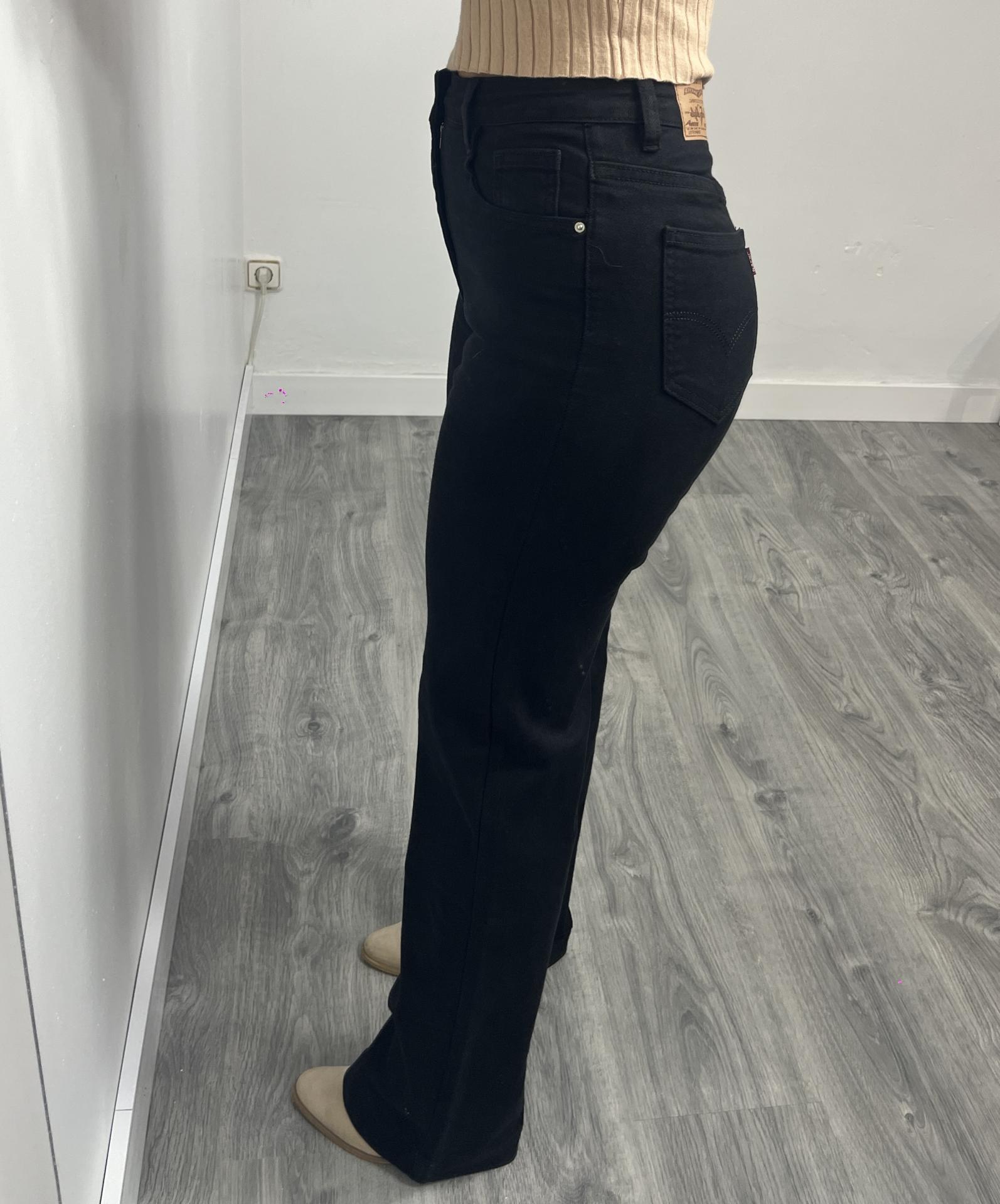Este pantalón wide leg negro para mujer combina comodidad, estilo y versatilidad en una sola prenda. Confeccionado en tejido elástico de alta calidad, se adapta perfectamente a la figura sin perder su forma, realzando la silueta de manera natural.