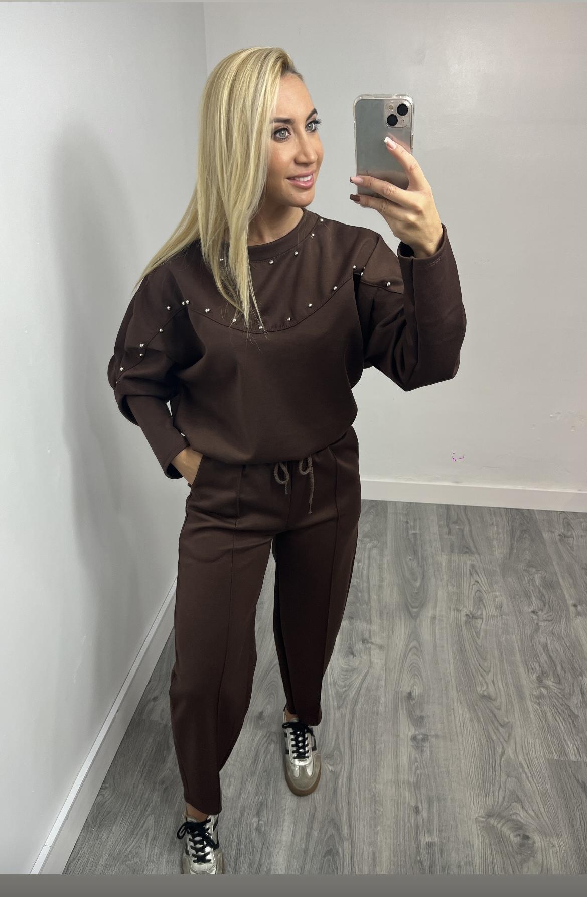 Conjunto Mujer Dos Piezas Marrón con Detalles de Tachuelas
