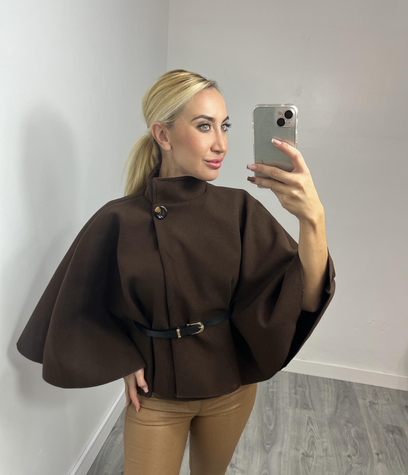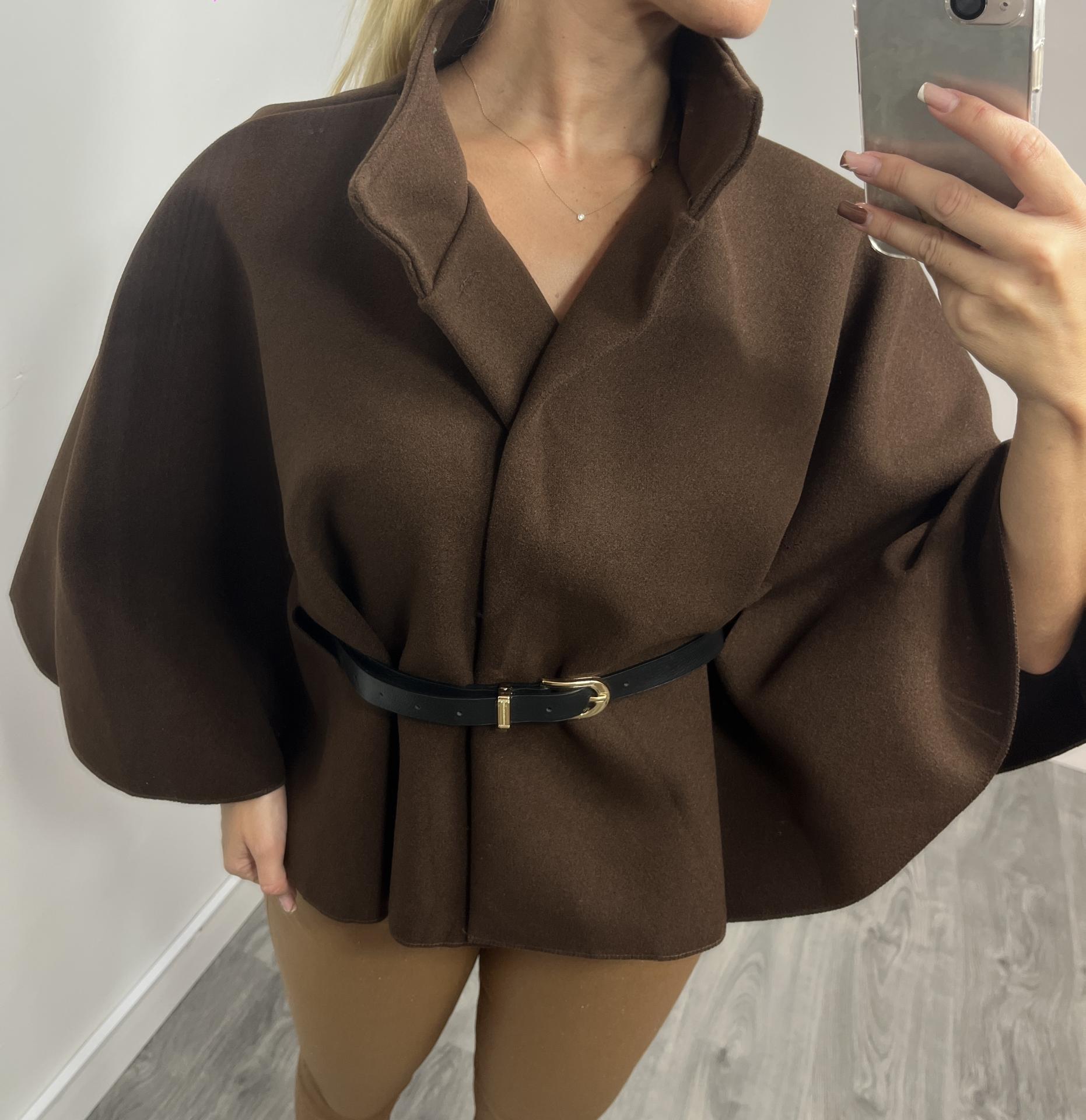 Chaqueta capa mujer color marrón con cinturón ajustable
