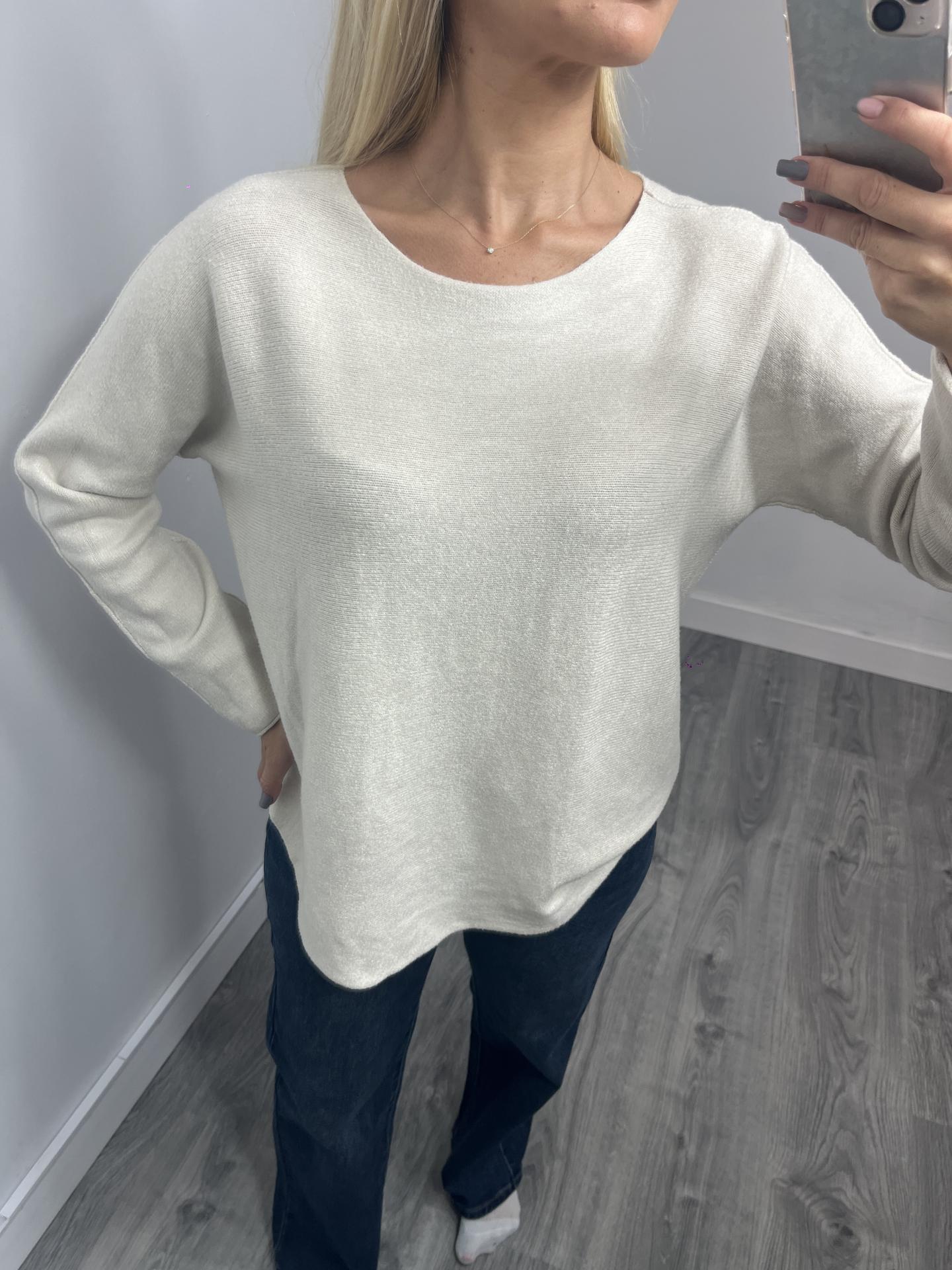 Este jersey de punto talla única (36-46) está pensado para adaptarse al cuerpo sin marcar, ofreciendo una caída bonita, ligera y súper favorecedora.