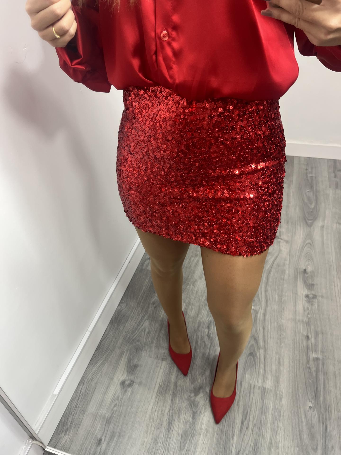 Falda de Lentejuelas Mujer Rojo