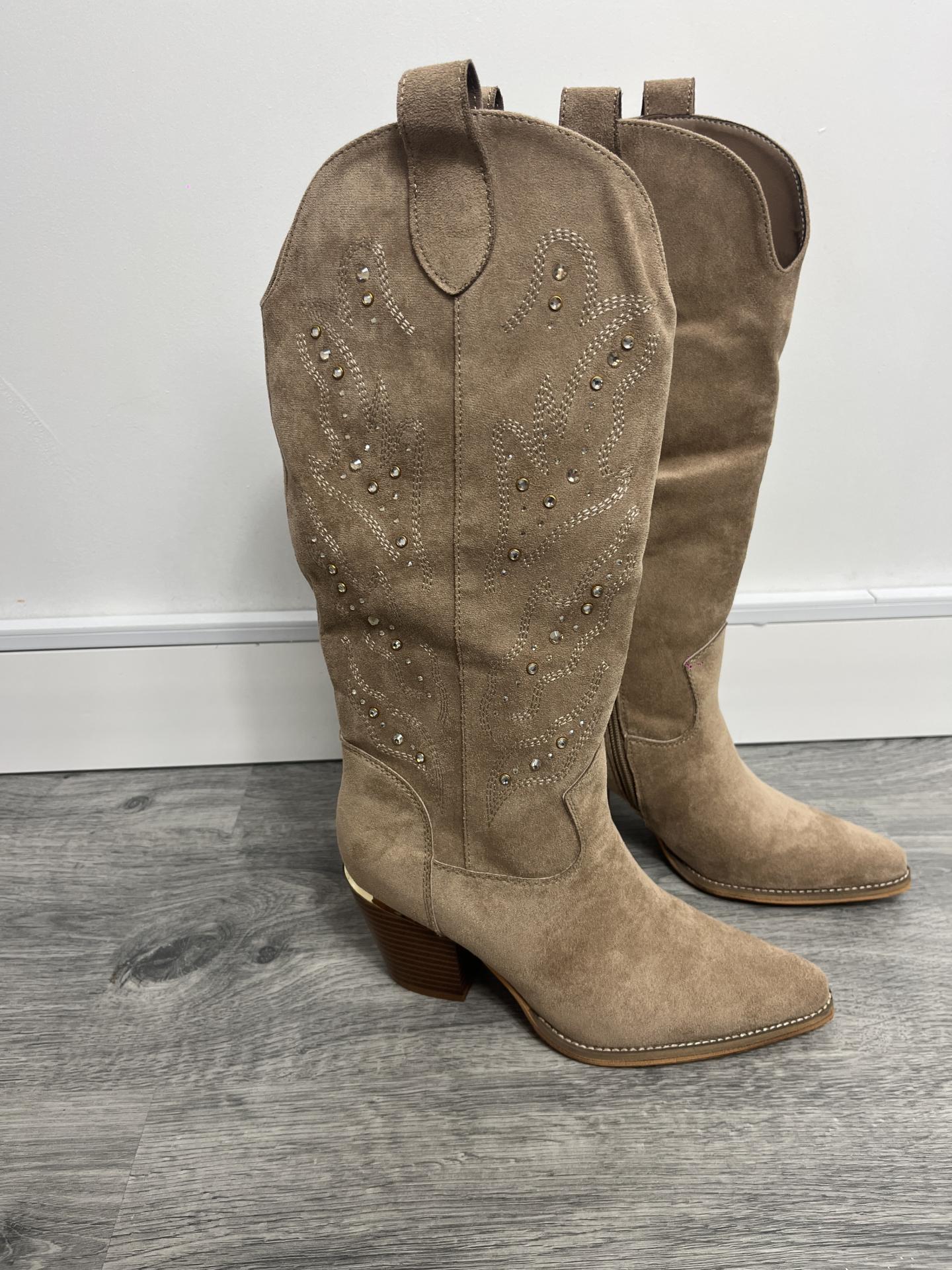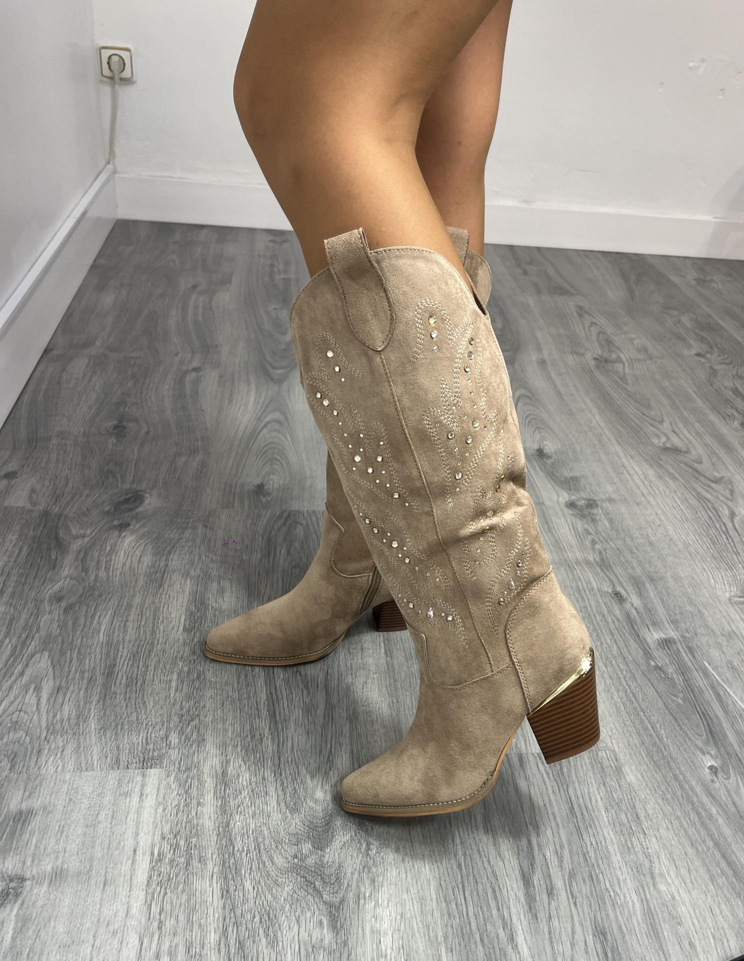 Descubre las Botas Cowboy Beige con Brillantes de Malika, el modelo que está arrasando esta temporada y que combina estilo, comodidad y abrigo en un solo diseño. Estas botas destacan por su acabado en tono beige suave que combina con cualquier outfit, y por sus brillantes en la caña, que aportan un toque elegante y luminoso que las hace únicas.