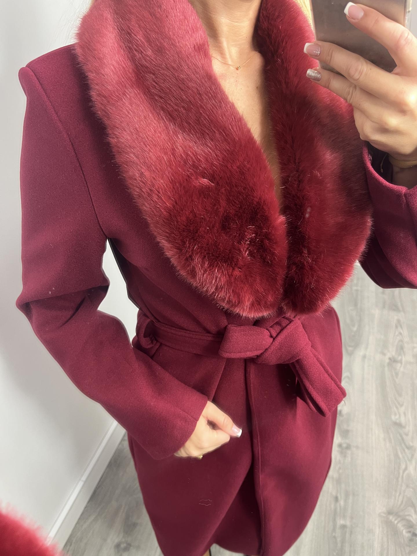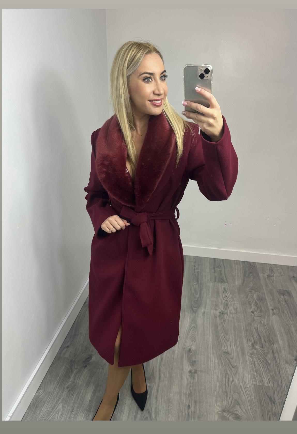 Abrigo Elegancia Burdeos con Pelo Desmontable