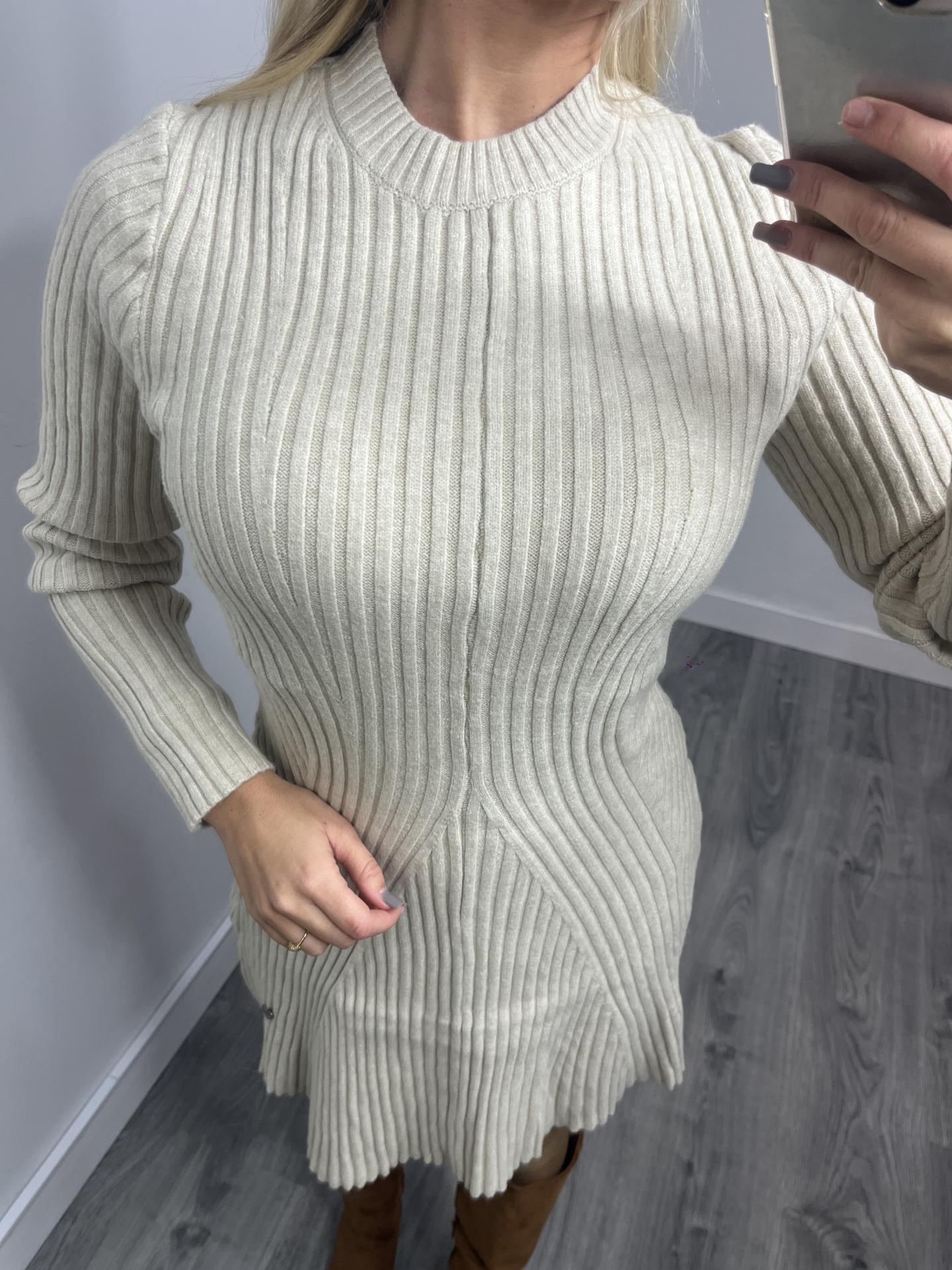 Vestido de Punto Canalé Beige Mujer