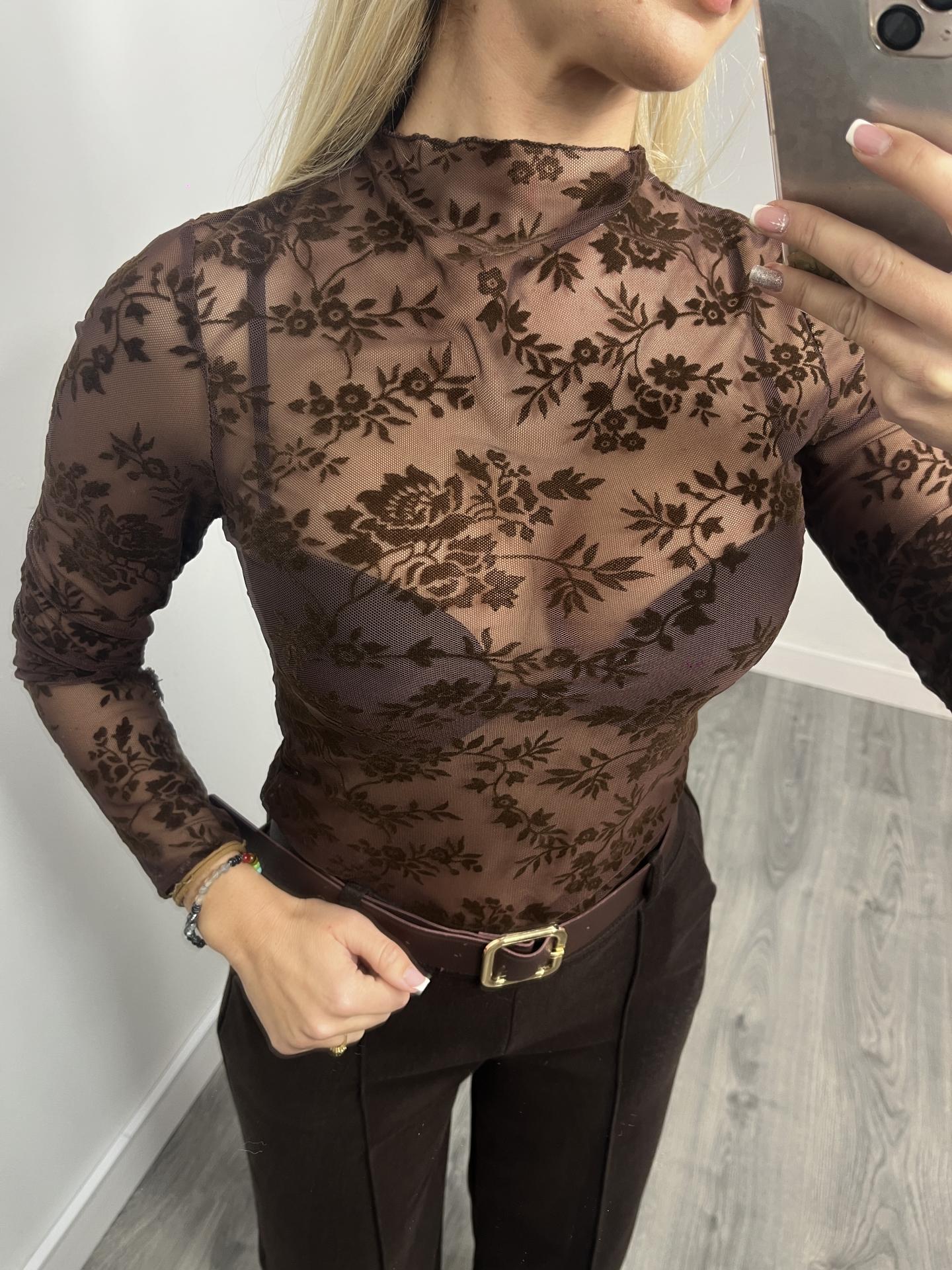 Este top de malla transparente con diseño floral es la prenda ideal para elevar cualquier look con un toque elegante, femenino y sofisticado. Confeccionado en tul elástico de alta calidad, se adapta perfectamente al cuerpo resaltando la silueta sin perder comodidad.