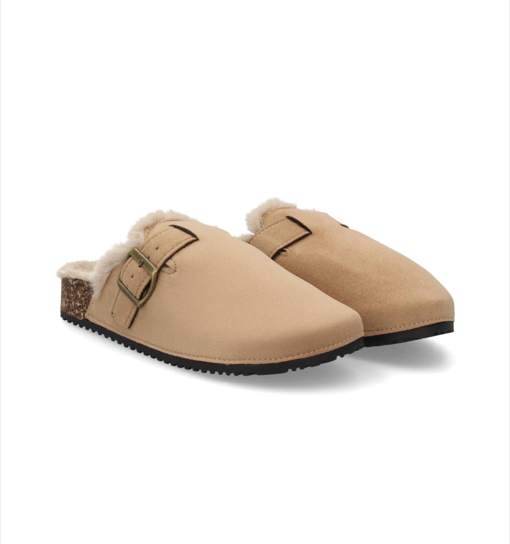 Zueco tipo sabot para mujer con punta cerrad, interior forrado de borreguito sintético suave que aporta calidez. Plantilla tipo bio. Ideal para otoño invierno.