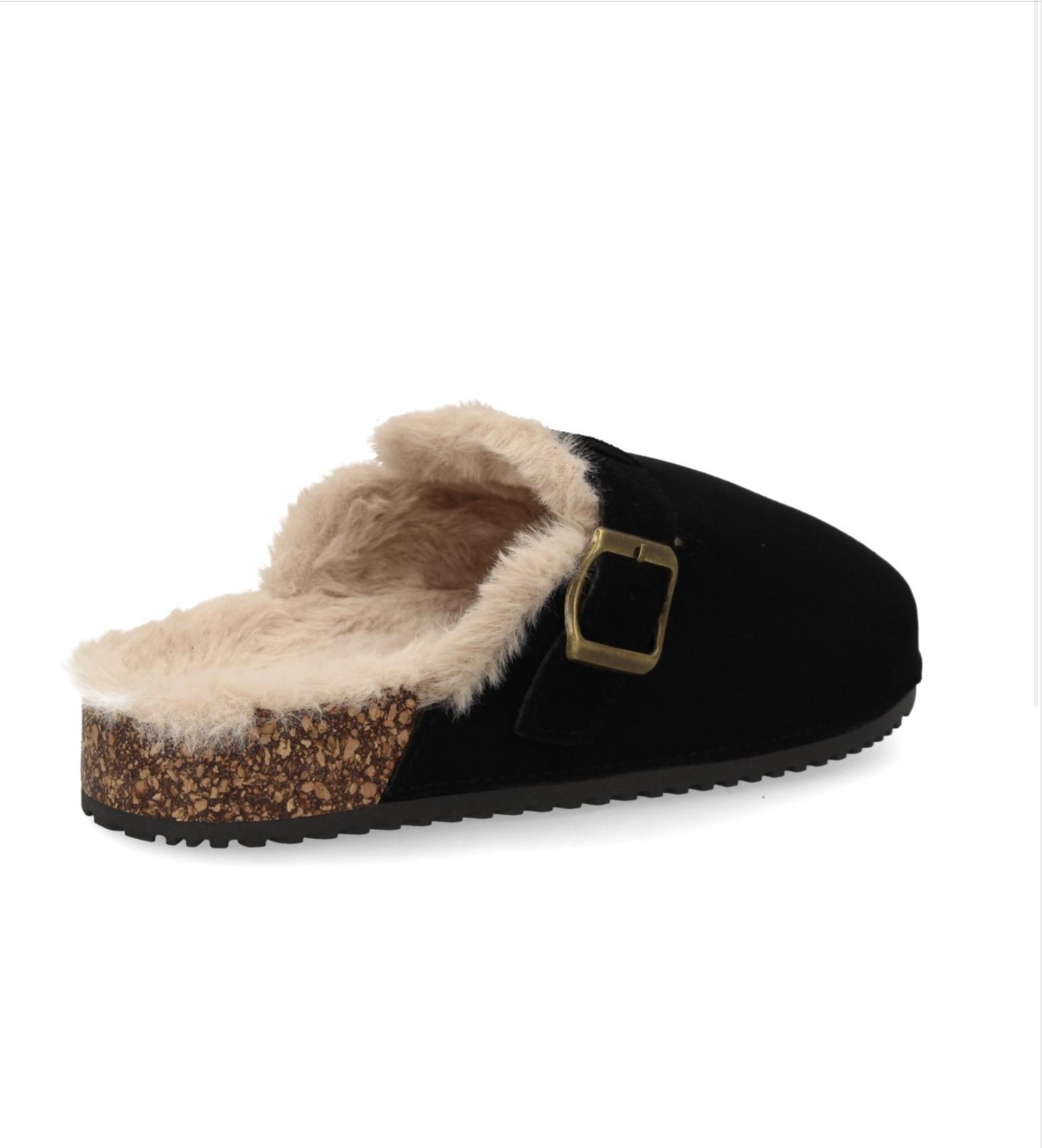 Zueco forrado cálido con hebilla para mujer Negro