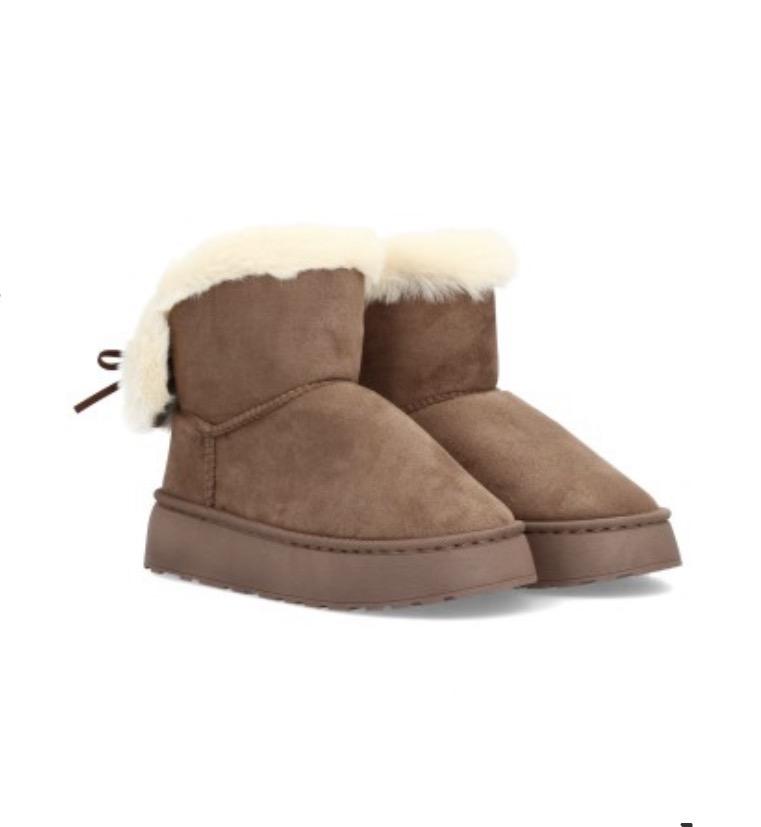 Bota invernal forrada con borreguito y plataforma Marrón