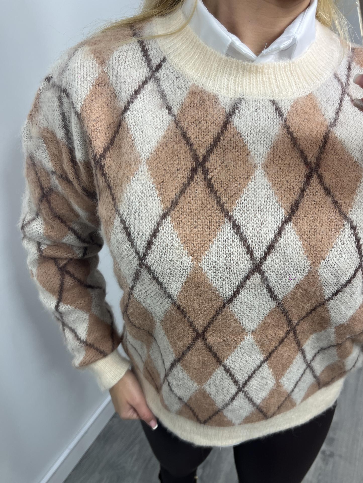 Jersey de Punto Rombo Beige y Marrón