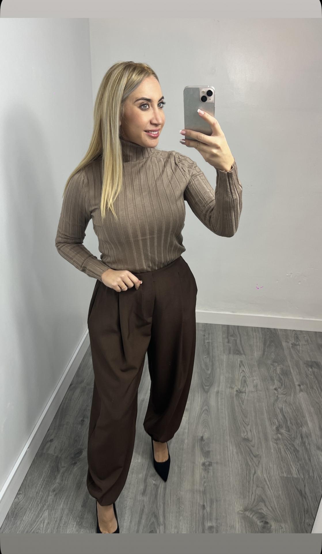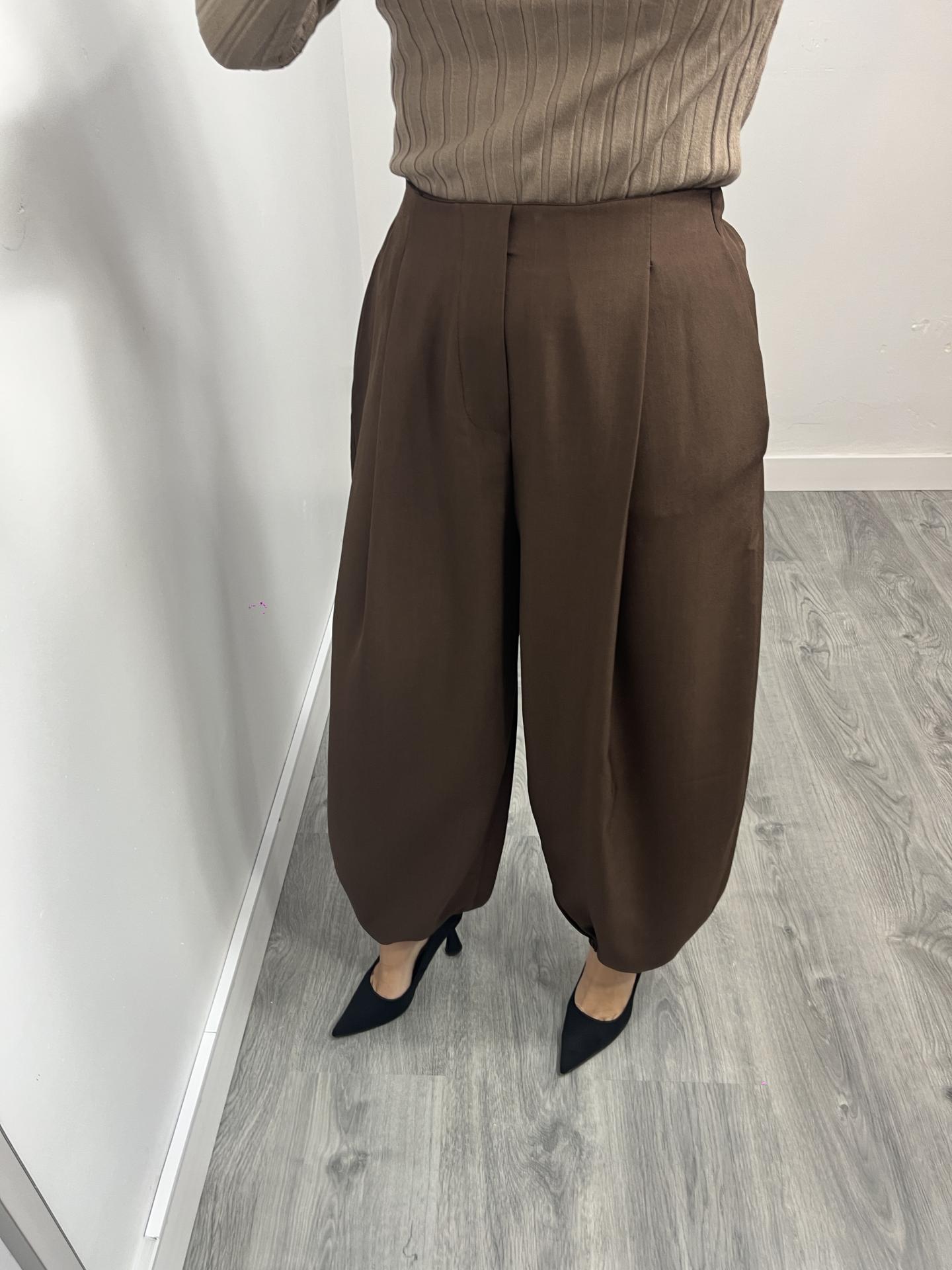 Este pantalón fluido de pinzas combina comodidad y estilo en una prenda versátil y atemporal. De tiro alto y pierna amplia, estiliza la figura y aporta una caída elegante que realza cualquier look.