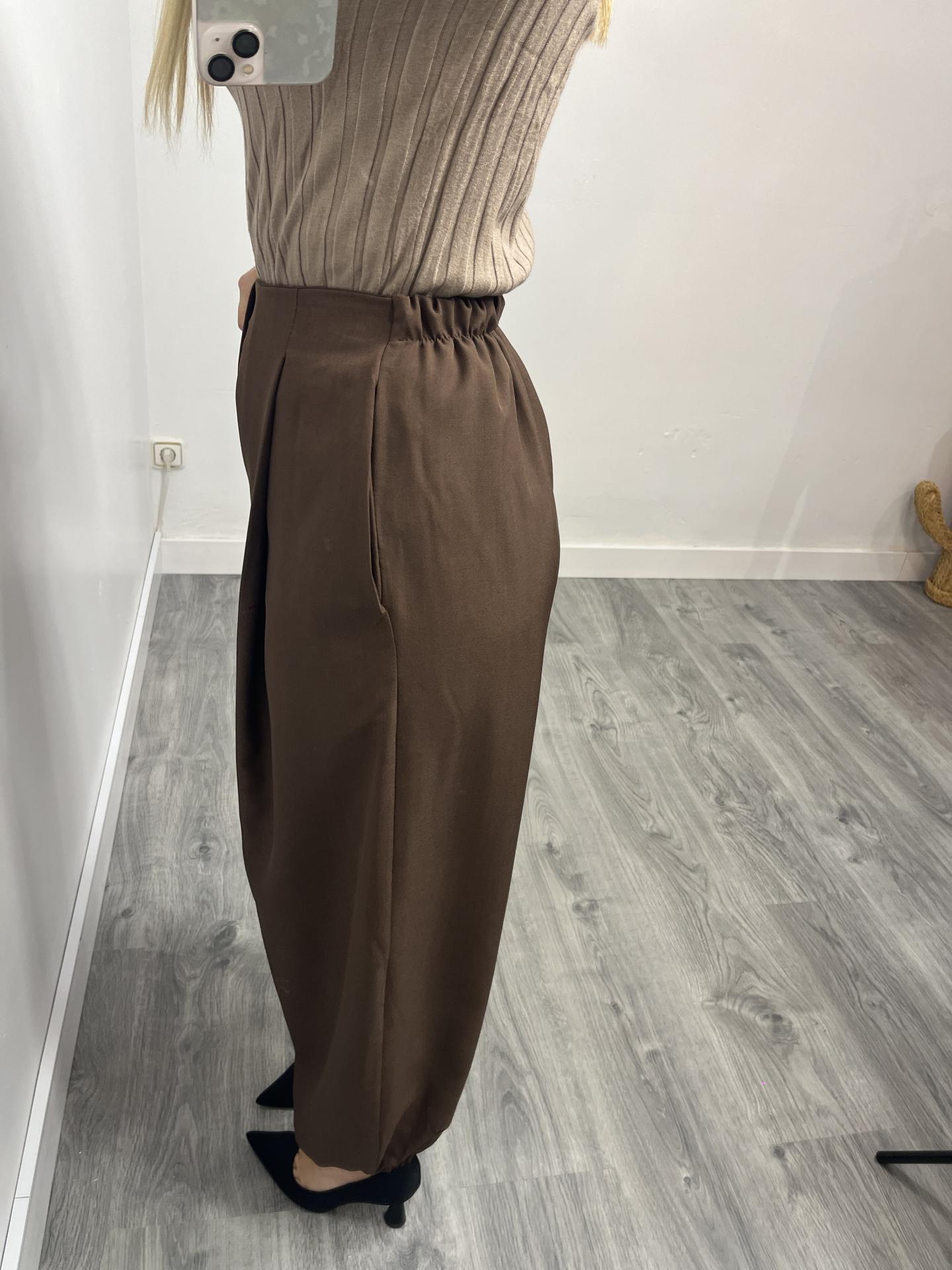 Su diseño con pinzas delanteras y bajo ligeramente fruncido crea un equilibrio perfecto entre lo clásico y lo moderno. Ideal para combinar con blusas, tops o camisas, es una opción ideal para outfits de oficina, cenas o eventos elegantes.