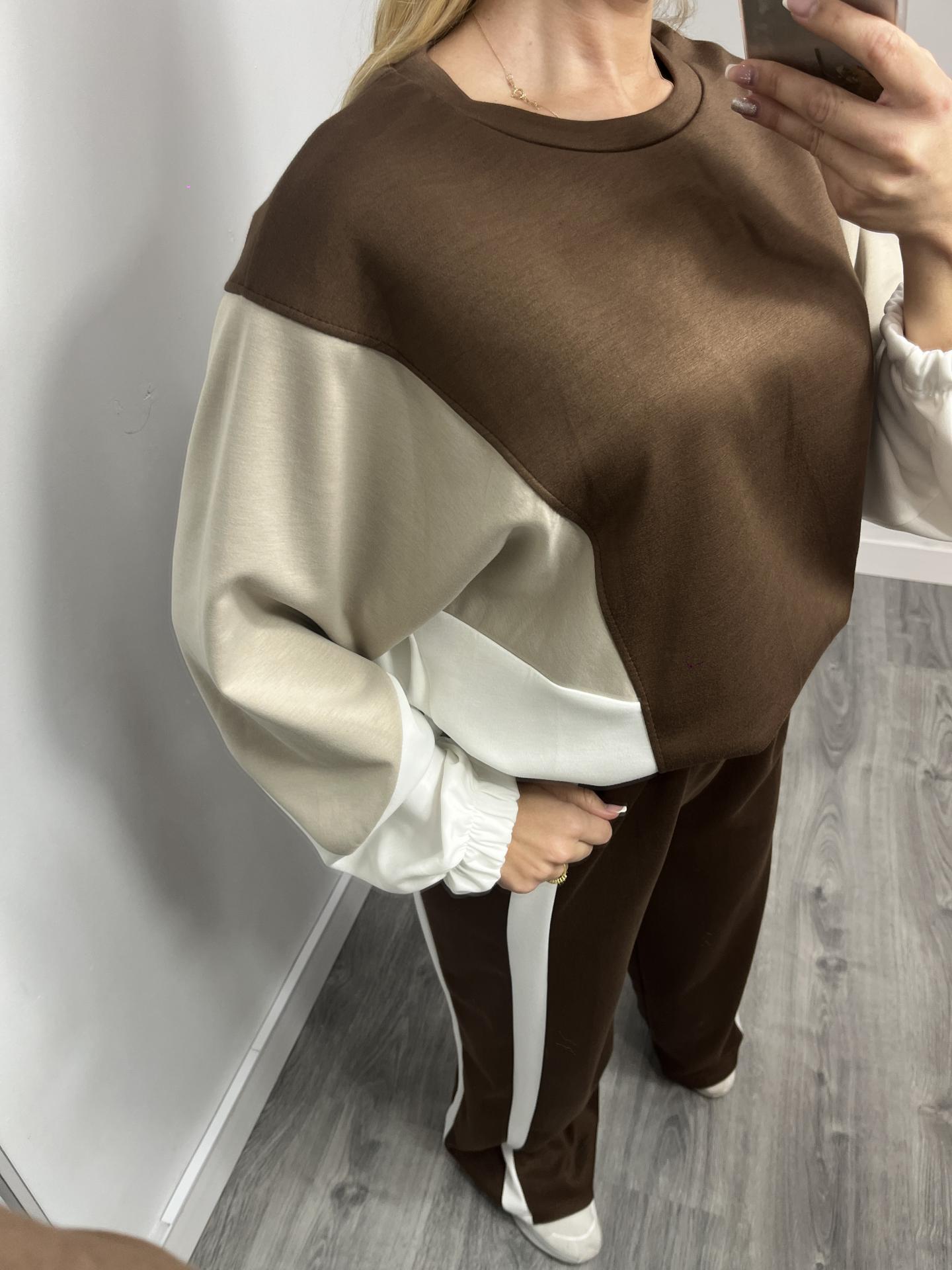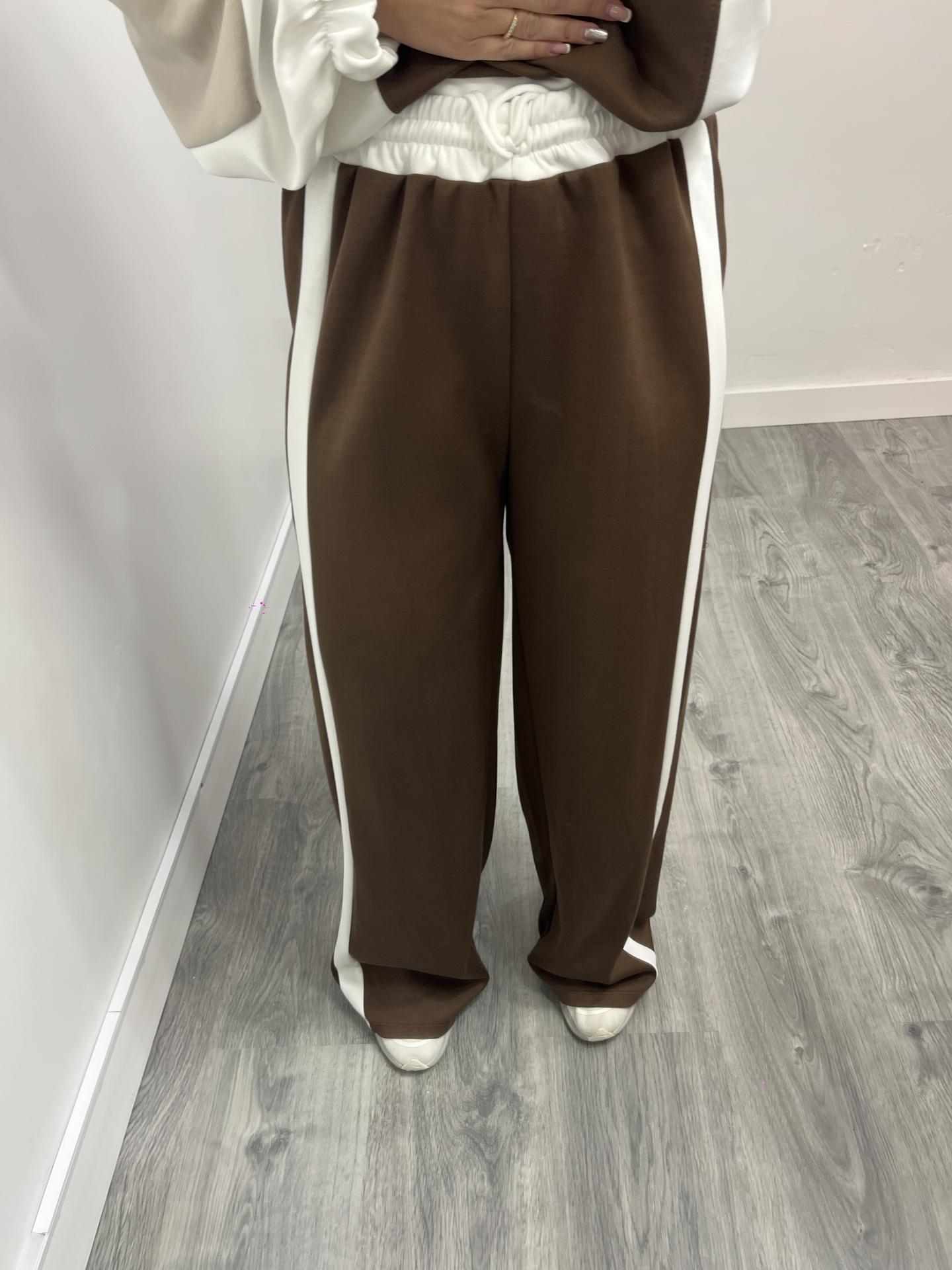 Conjunto deportivo de mujer bicolor en tonos marrón y beige, una combinación elegante y muy actual que se ha convertido en imprescindible esta temporada. Diseñado para ofrecer comodidad, estilo y versatilidad, este conjunto es perfecto tanto para looks casuales como para outfits urbanos con tendencia.