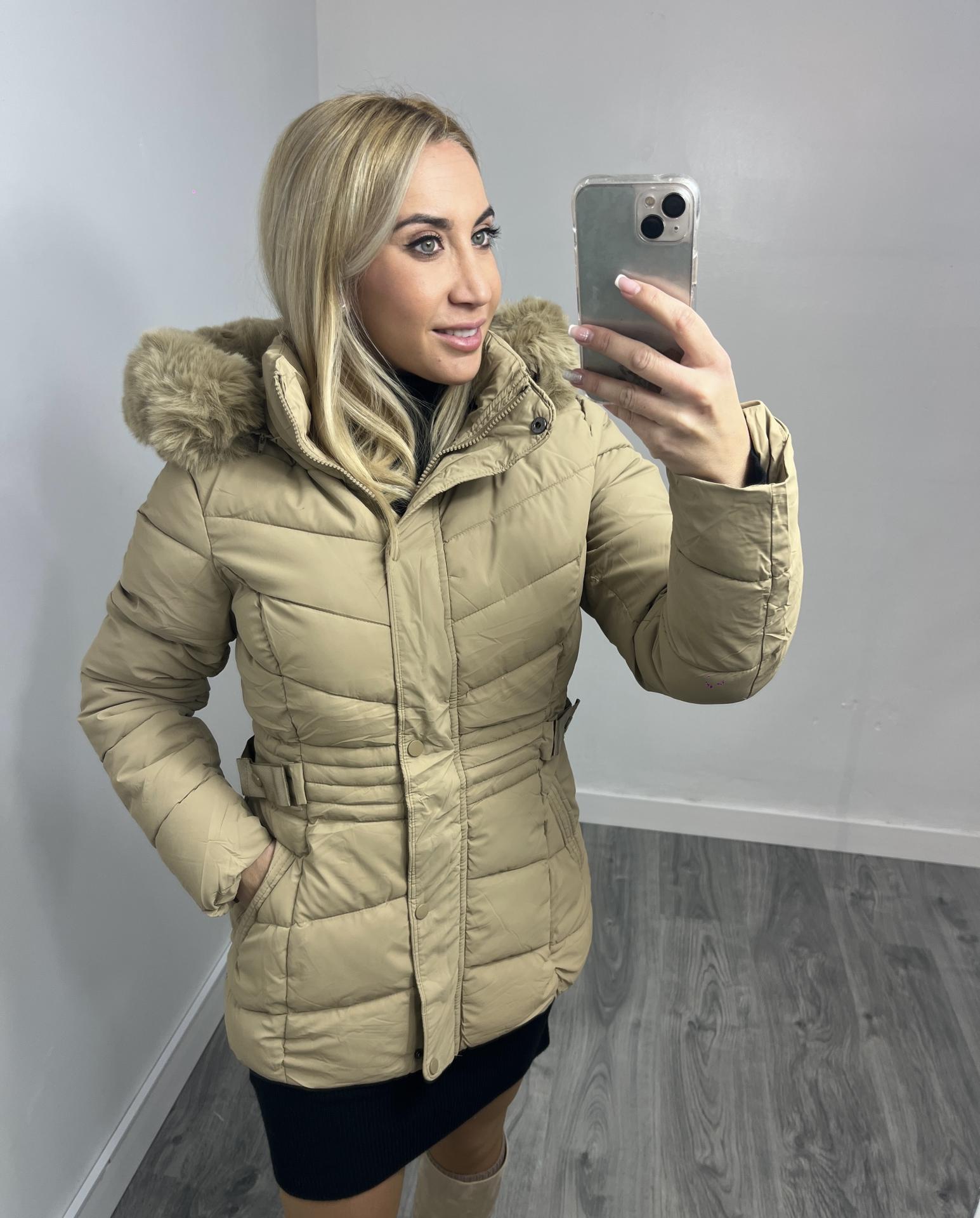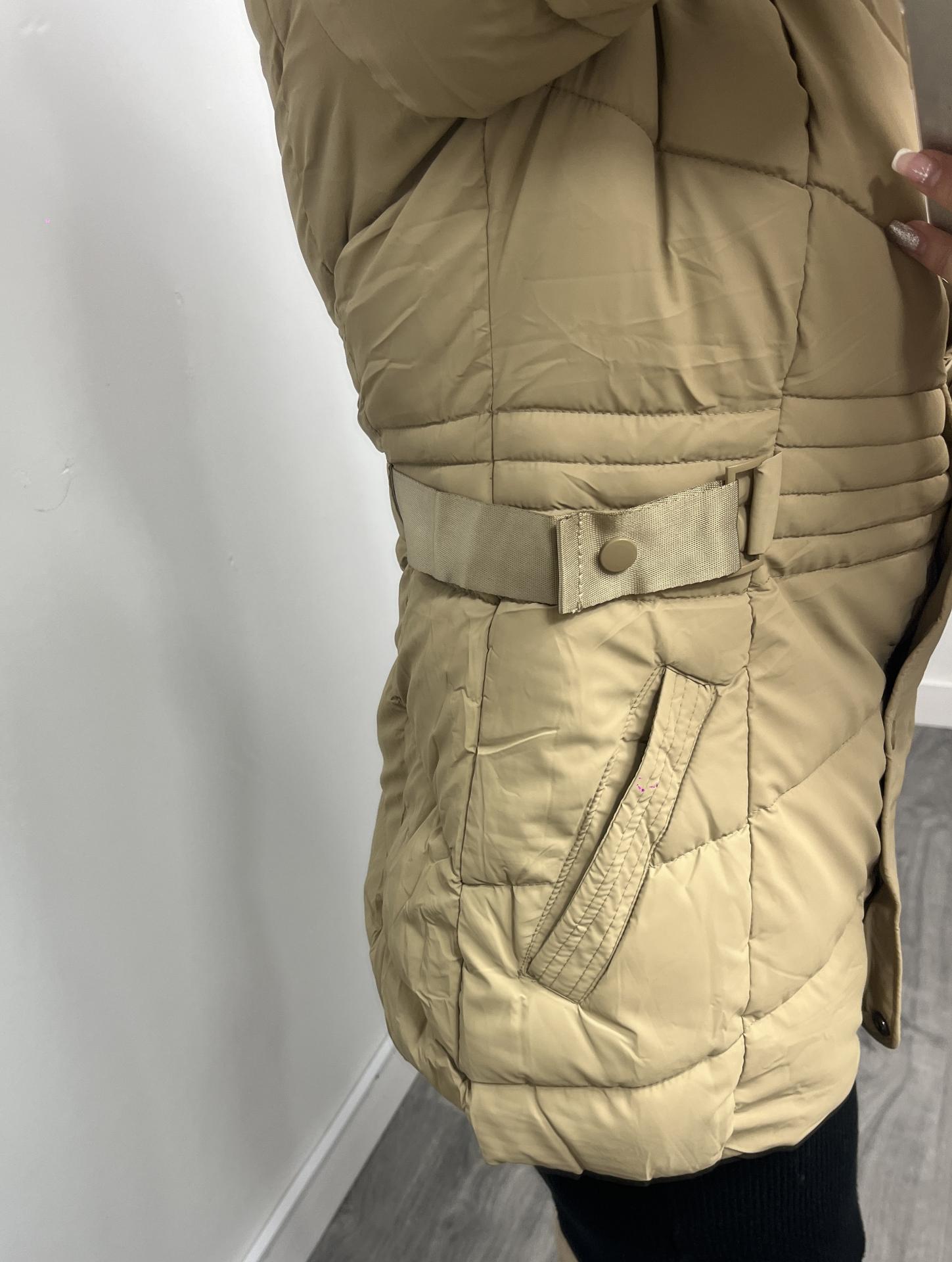 Chaqueta acolchada de mujer con gorro desmontable beige