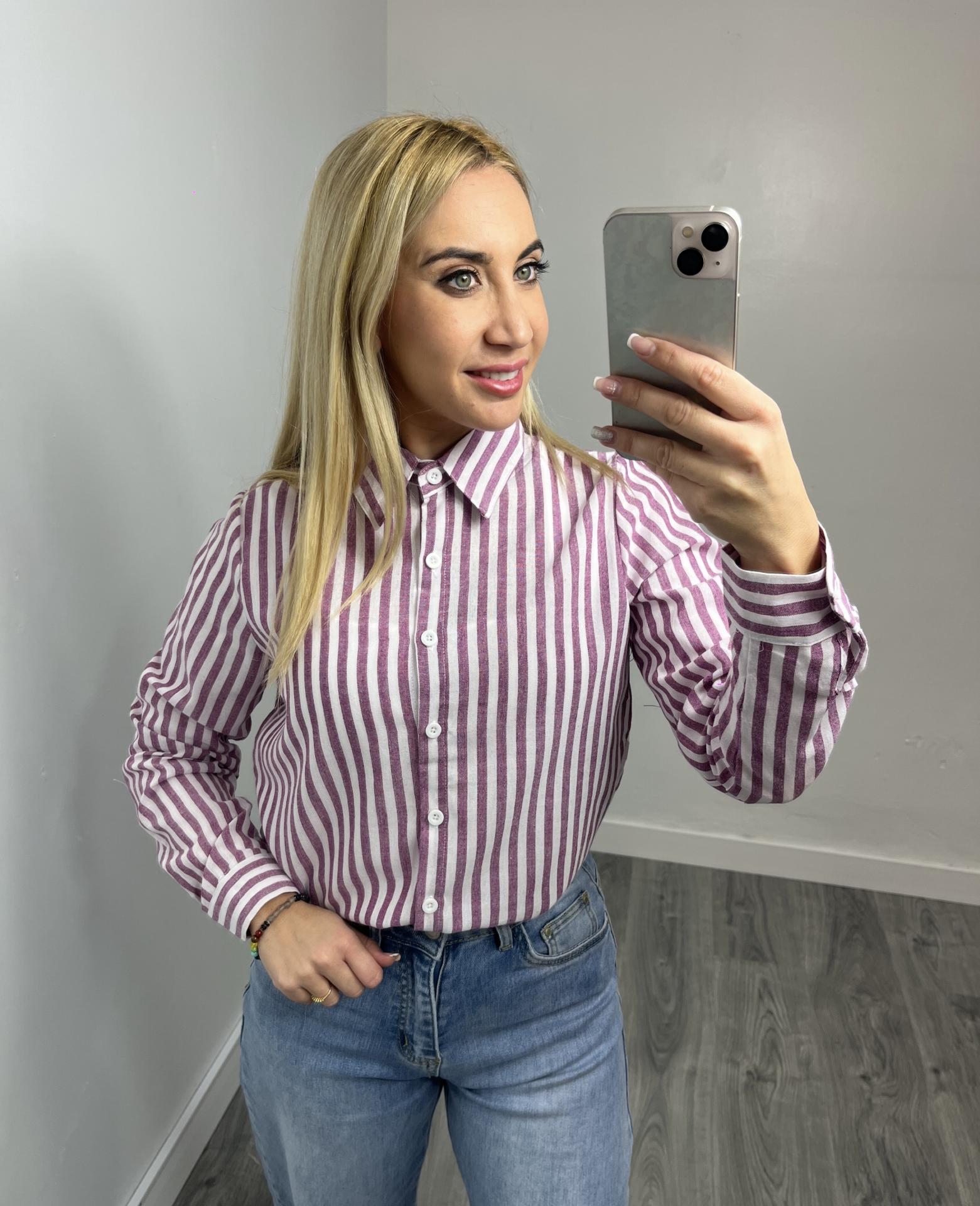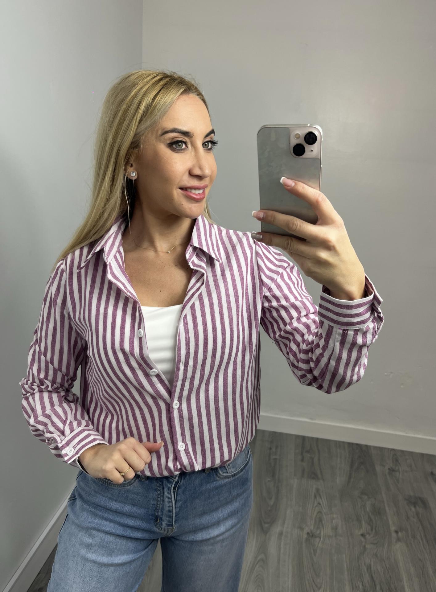 Camisa de rayas para mujer, una prenda atemporal y en tendencia esta temporada, disponible en varios colores. Su diseño clásico con rayas verticales estiliza la figura, mientras que su tejido ligero y cómodo la convierte en una opción ideal para el día a día.