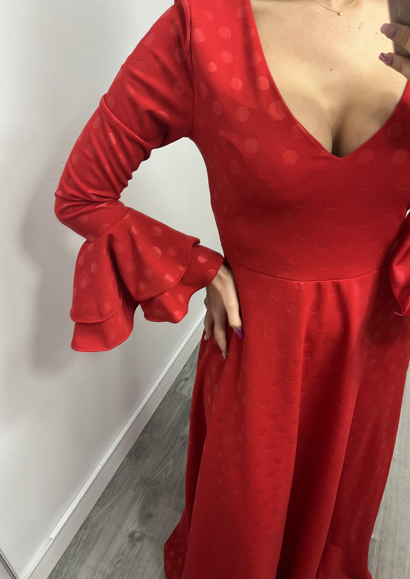 Bata Rociera de Lunares con Escote en V y Tejido Elástico Rojo