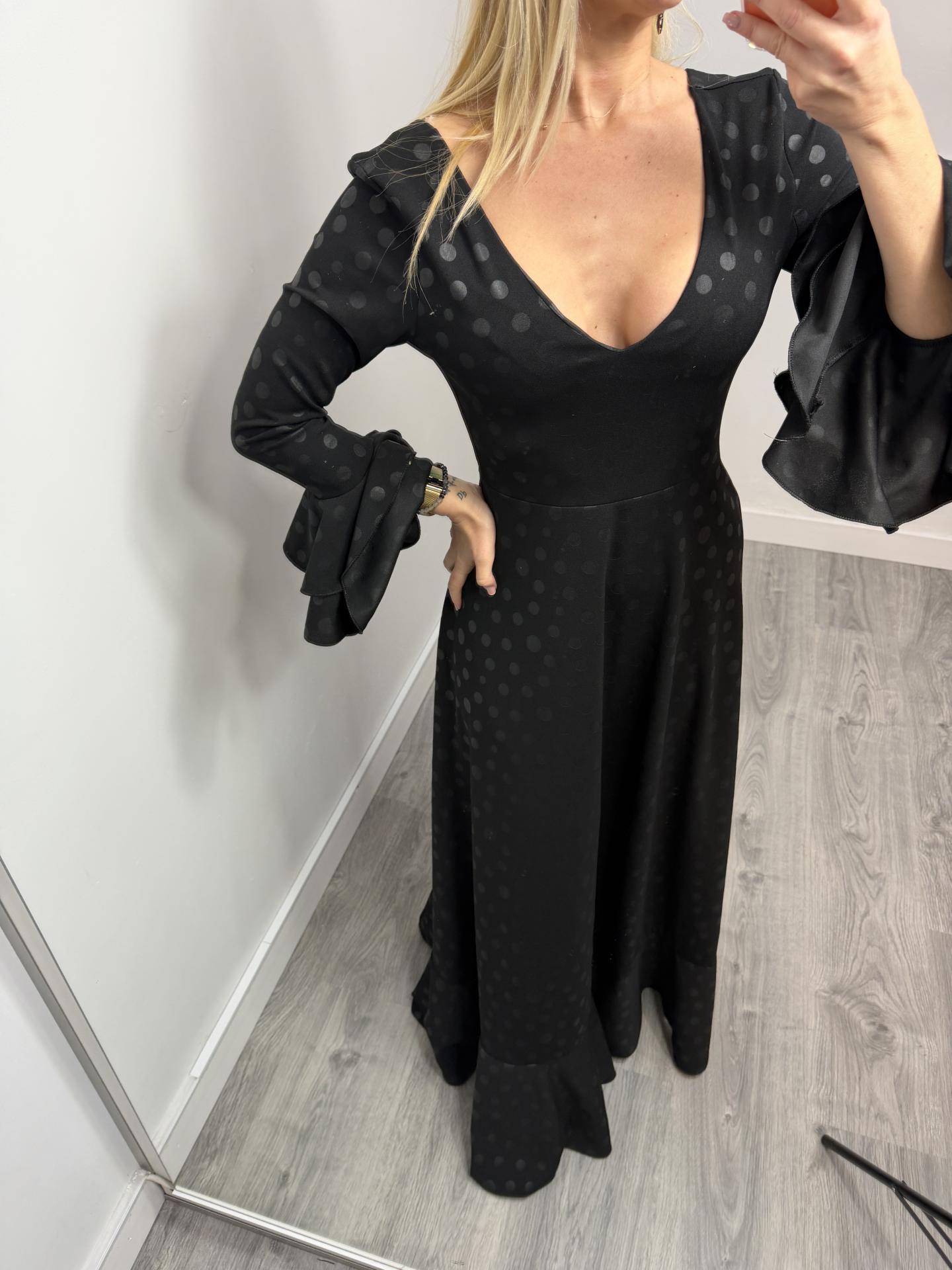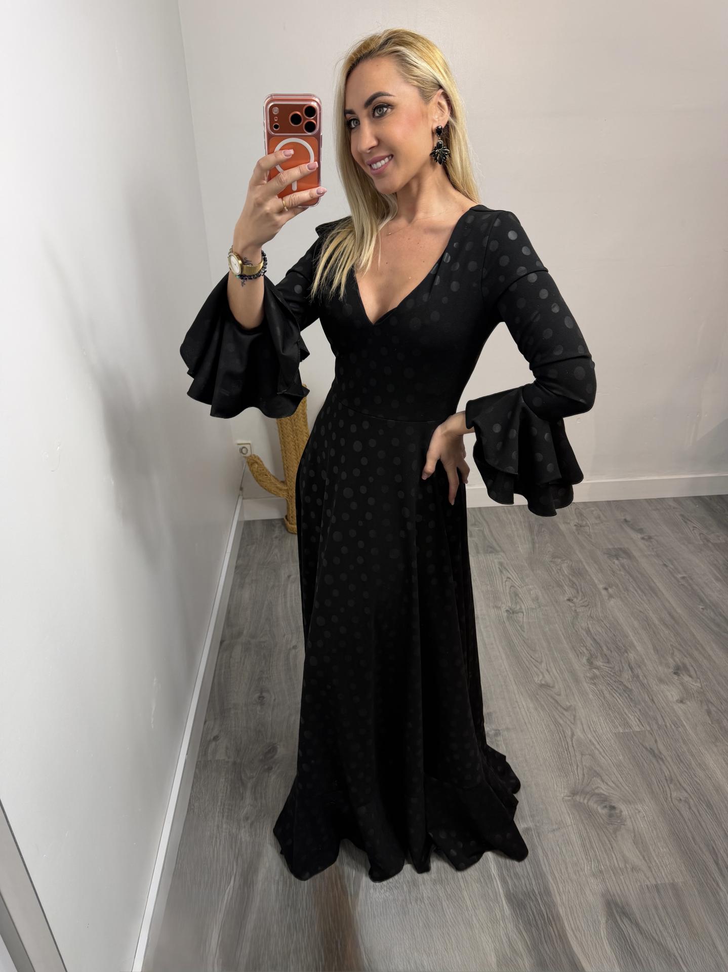 Bata Rociera de Lunares con Escote en V y Tejido Elástico Negro
