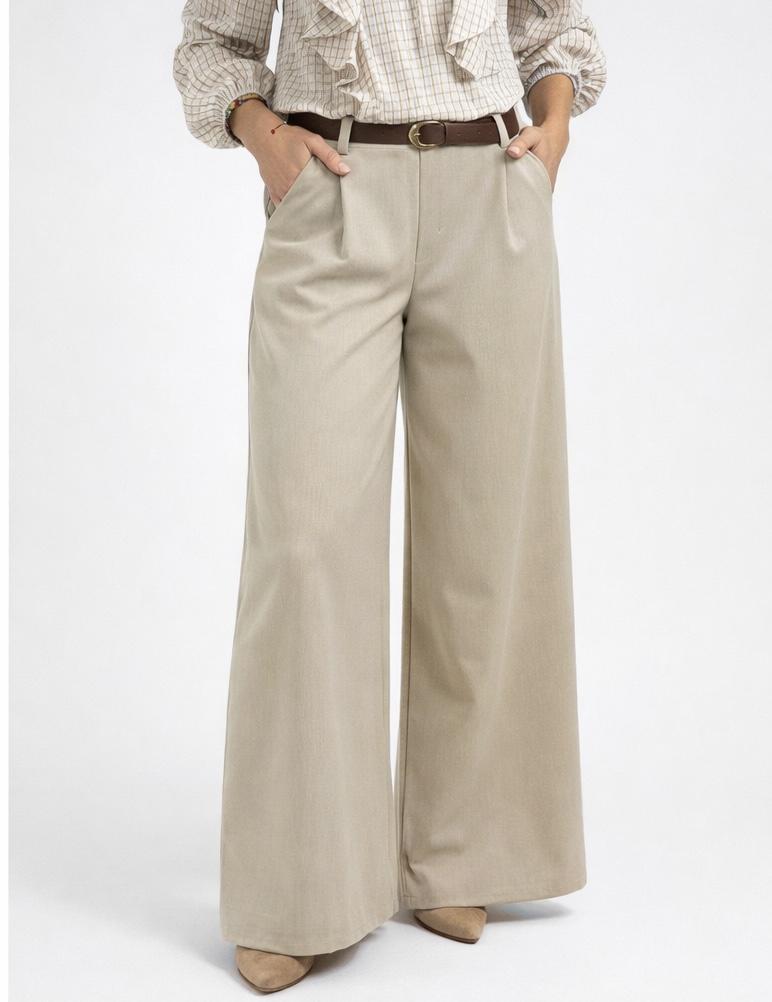 Pantalón palazzo elástico de mujer Beige
