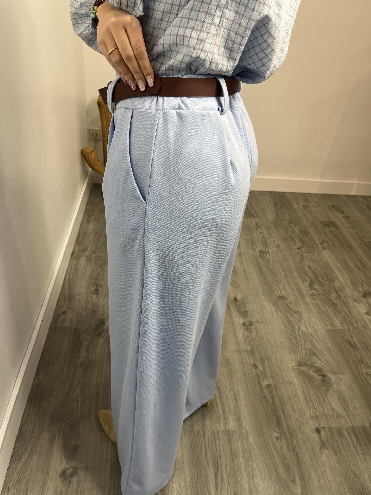 Pantalón palazzo elástico de mujer Celeste