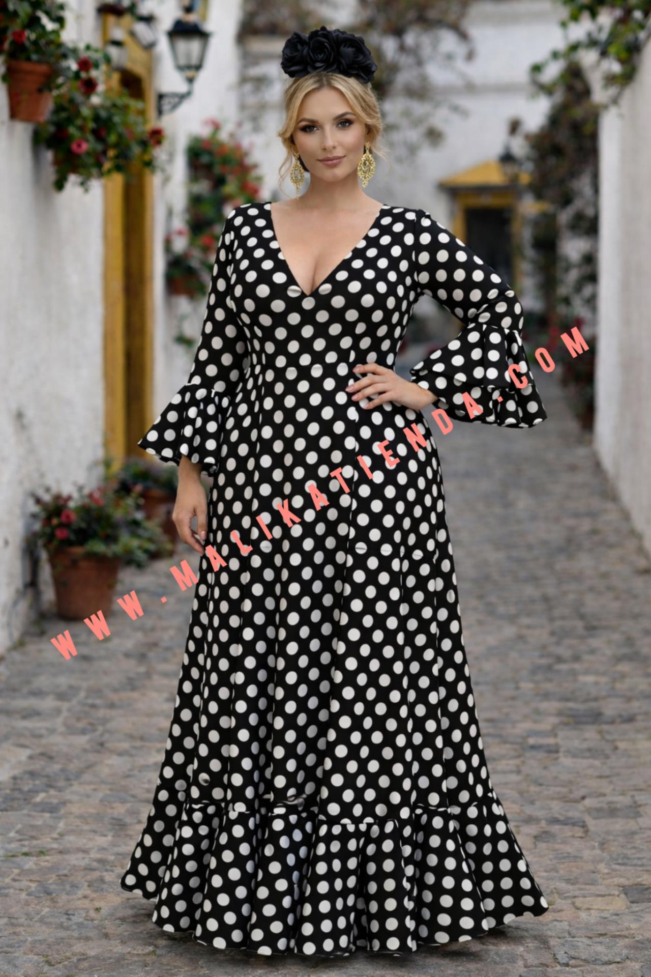 Vestido Bata Rociera Mujer Manga Talla Grande Negro