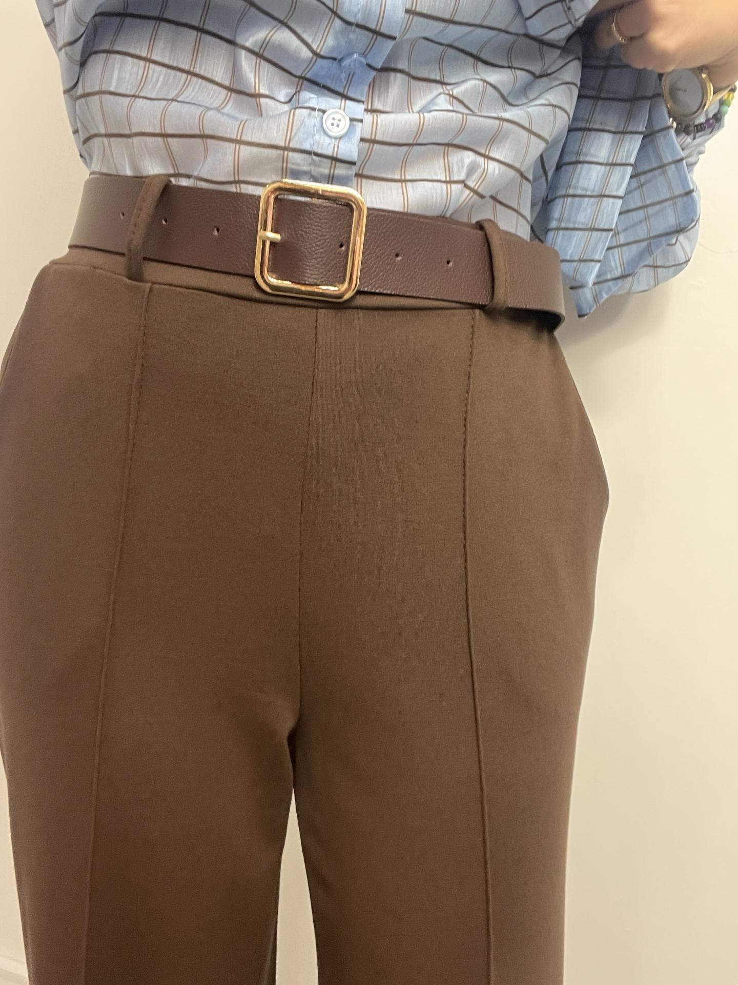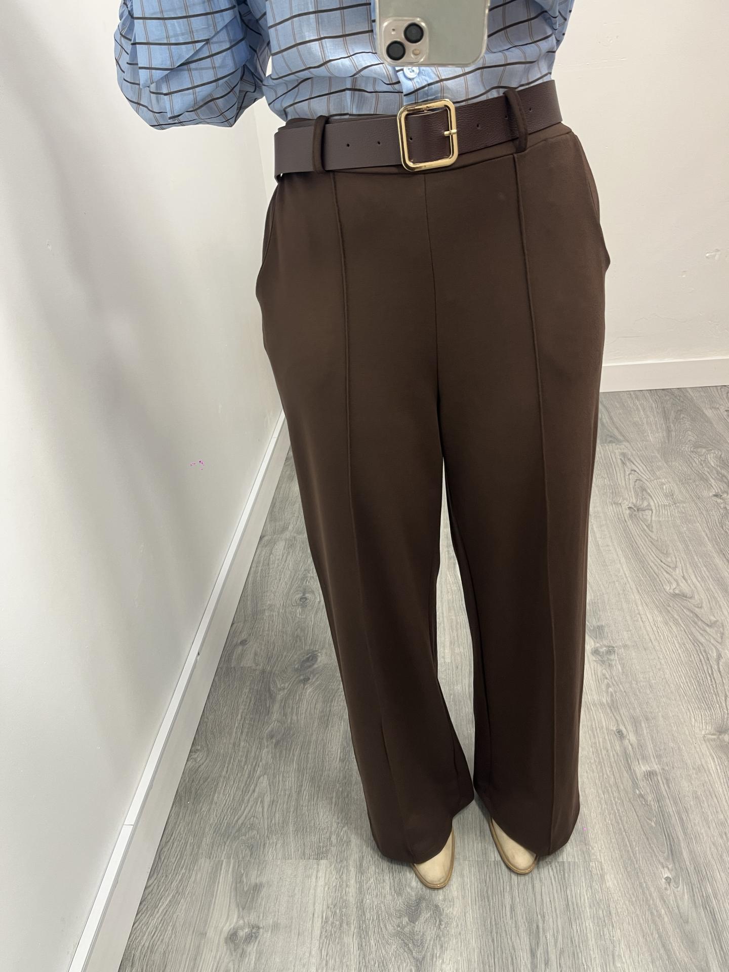 Pantalón Palazzo Mujer de Punto Elástico con Cinturón Marrón