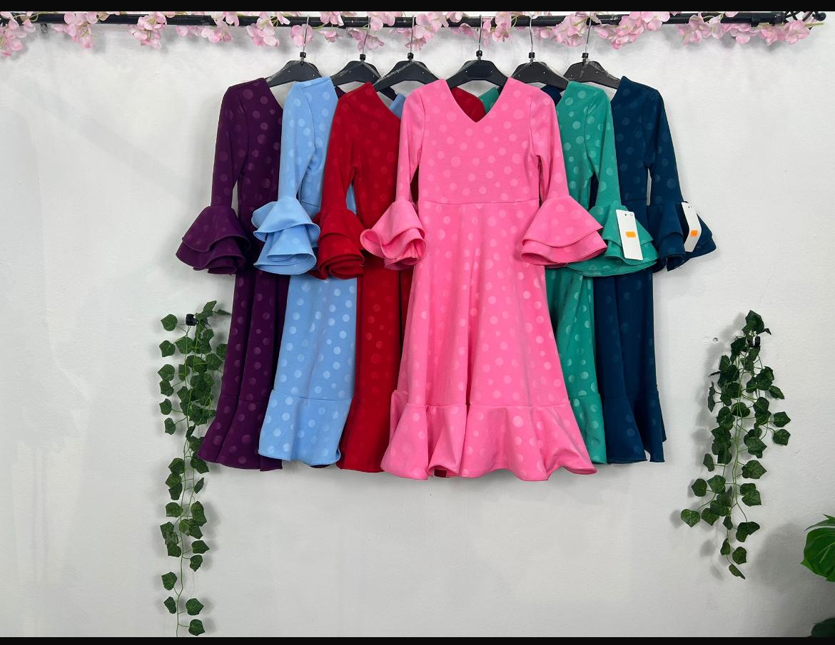 Esta bata rociera de lunares es la elección perfecta para lucir elegante y cómoda en ferias, romerías y eventos flamencos. Con un diseño clásico y favorecedor, presenta escote en V, manga larga con volantes y una caída fluida que estiliza la figura.