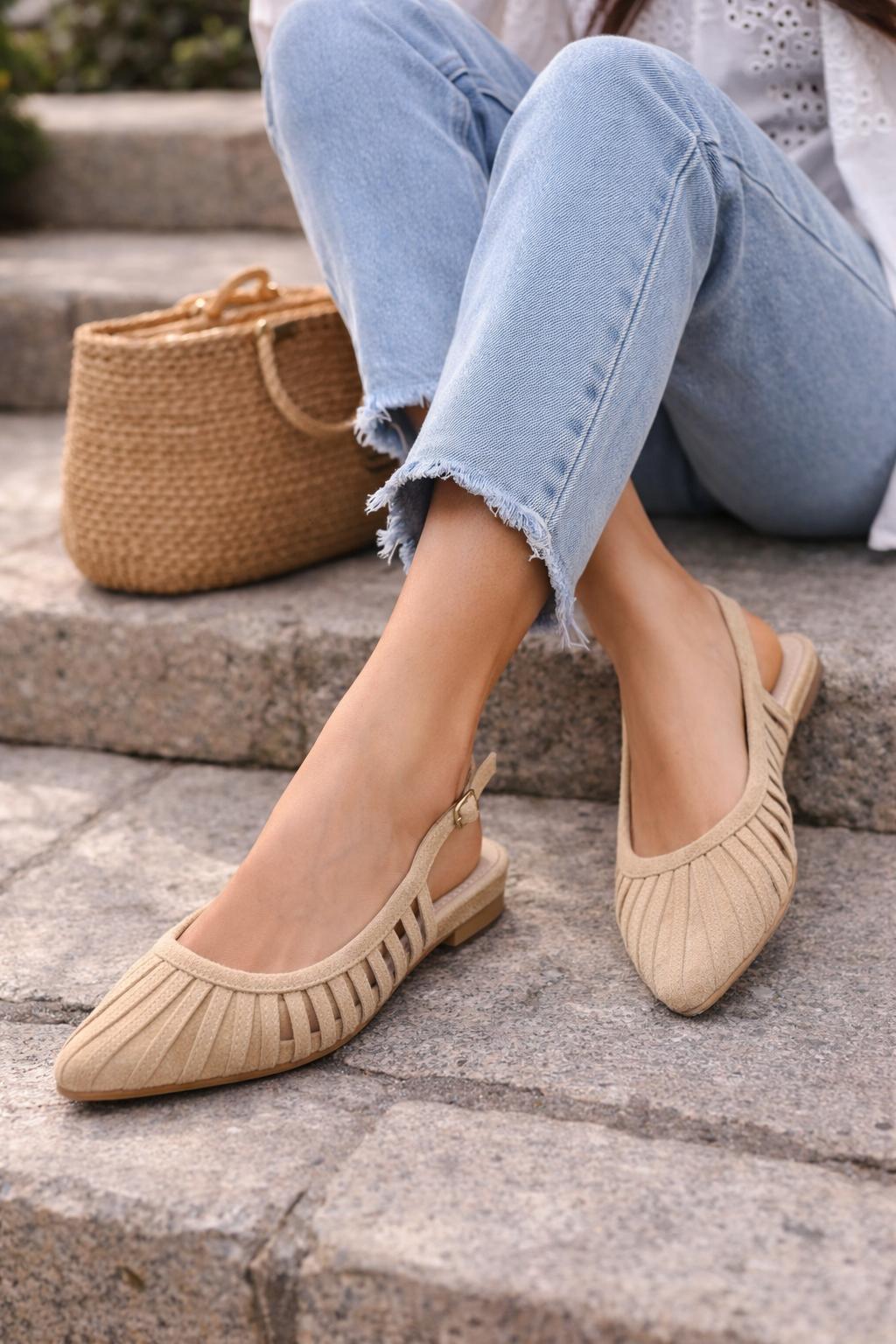 Descubre nuestras bailarinas destalonadas para mujer, el equilibrio perfecto entre comodidad y elegancia. Diseñadas con punta fina estilizada y acabado calado frontal, estas bailarinas planas son ideales para primavera y verano.