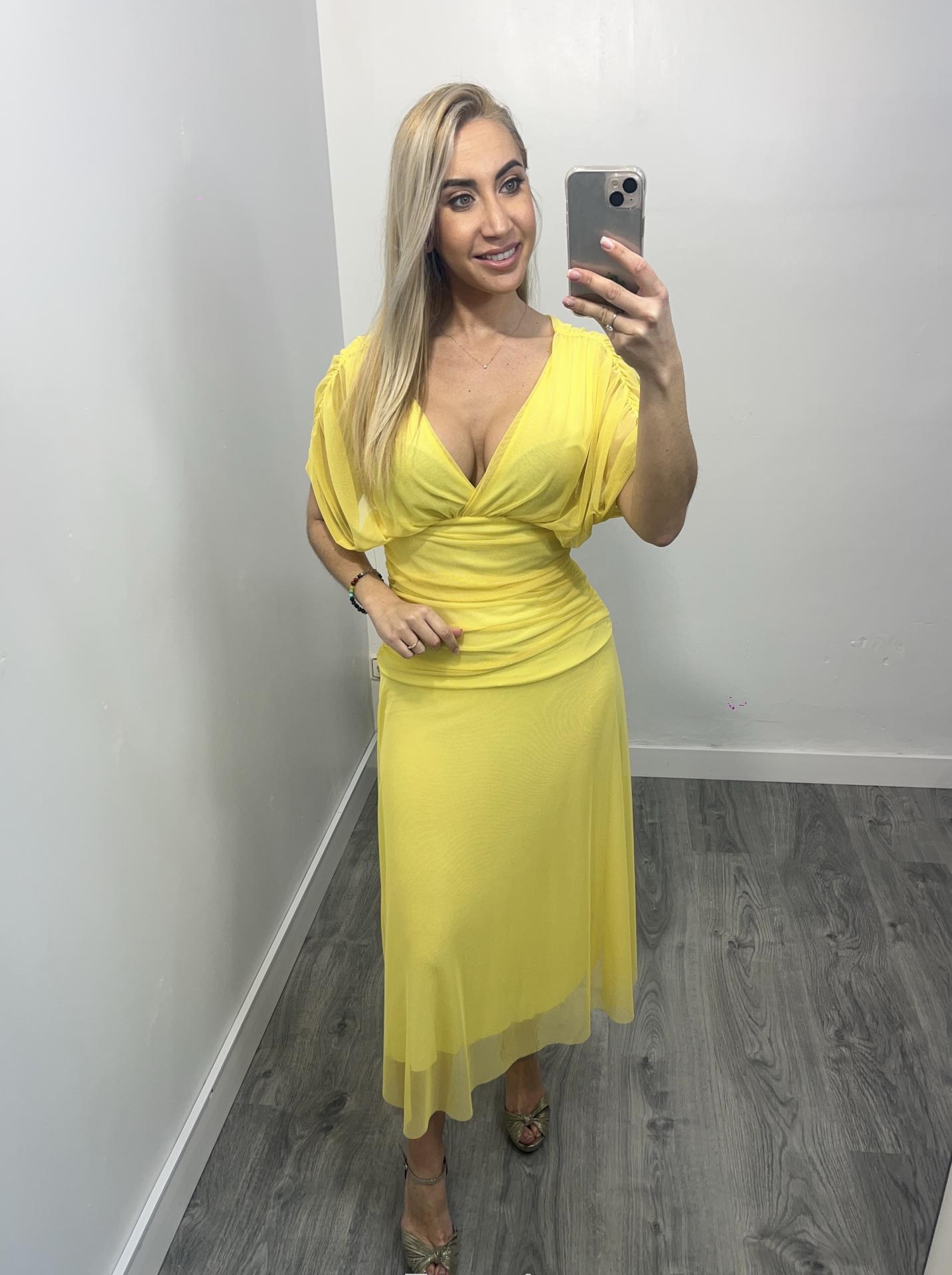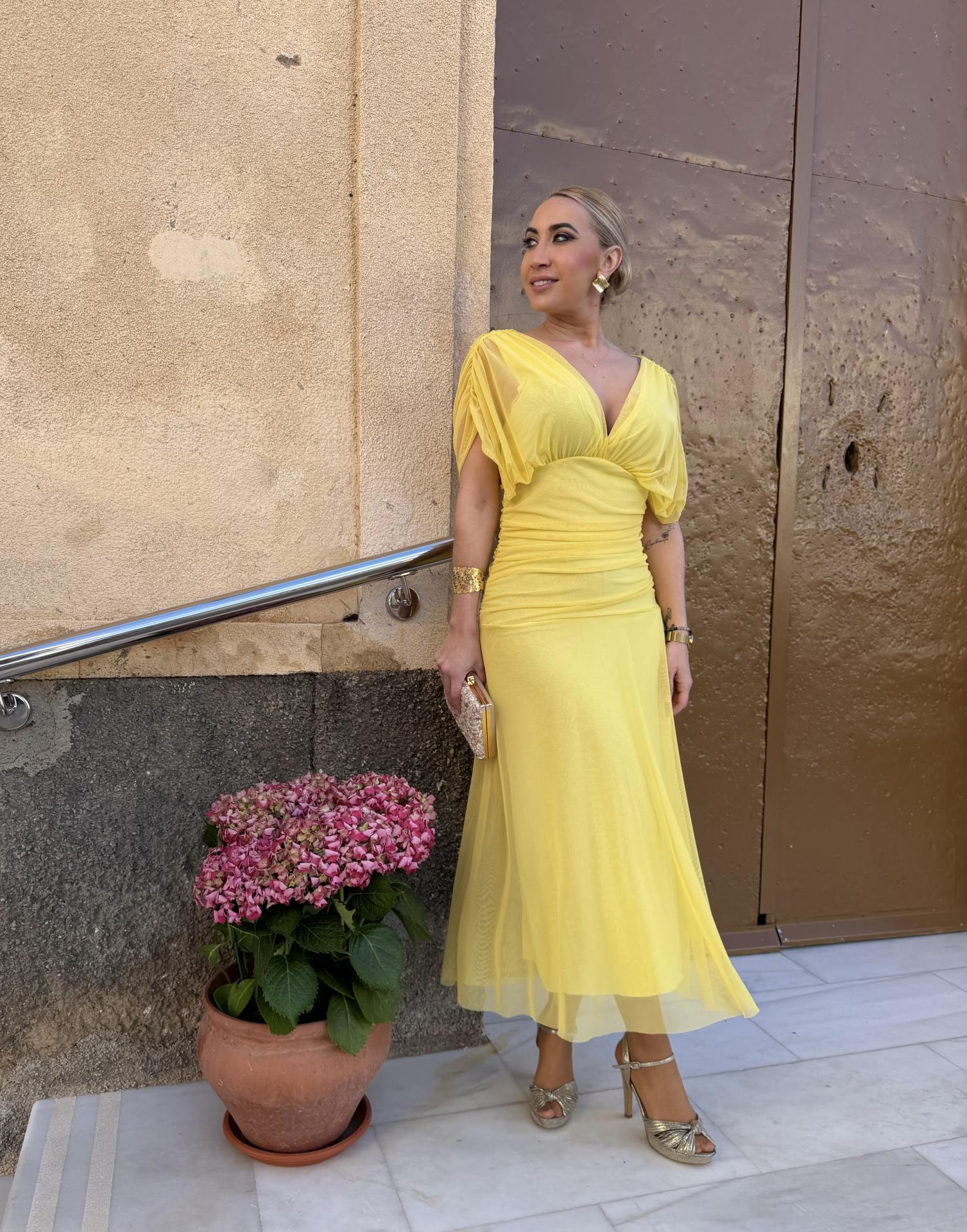 Vestido Elegante Verde Cataleya Invitadas Amarillo
