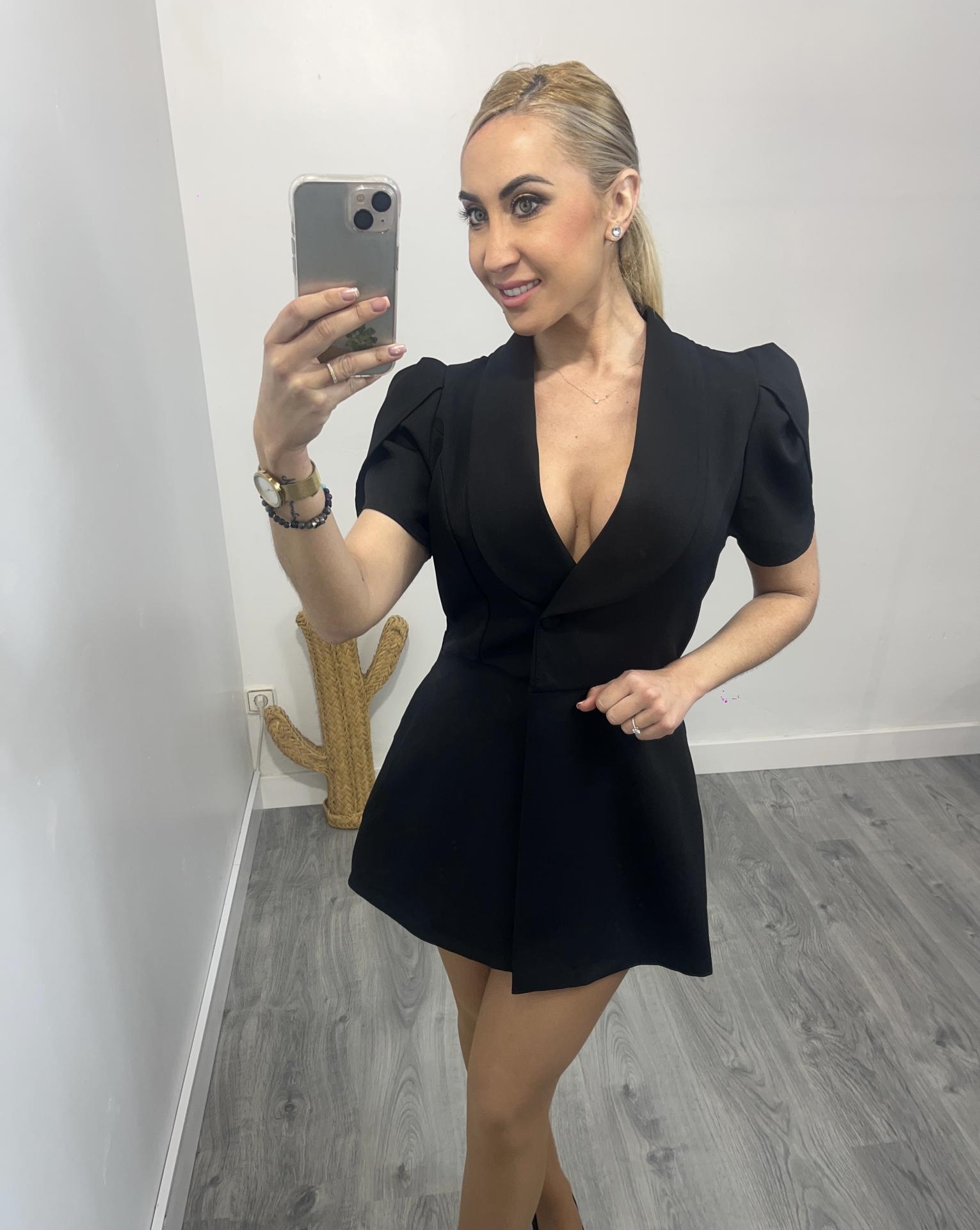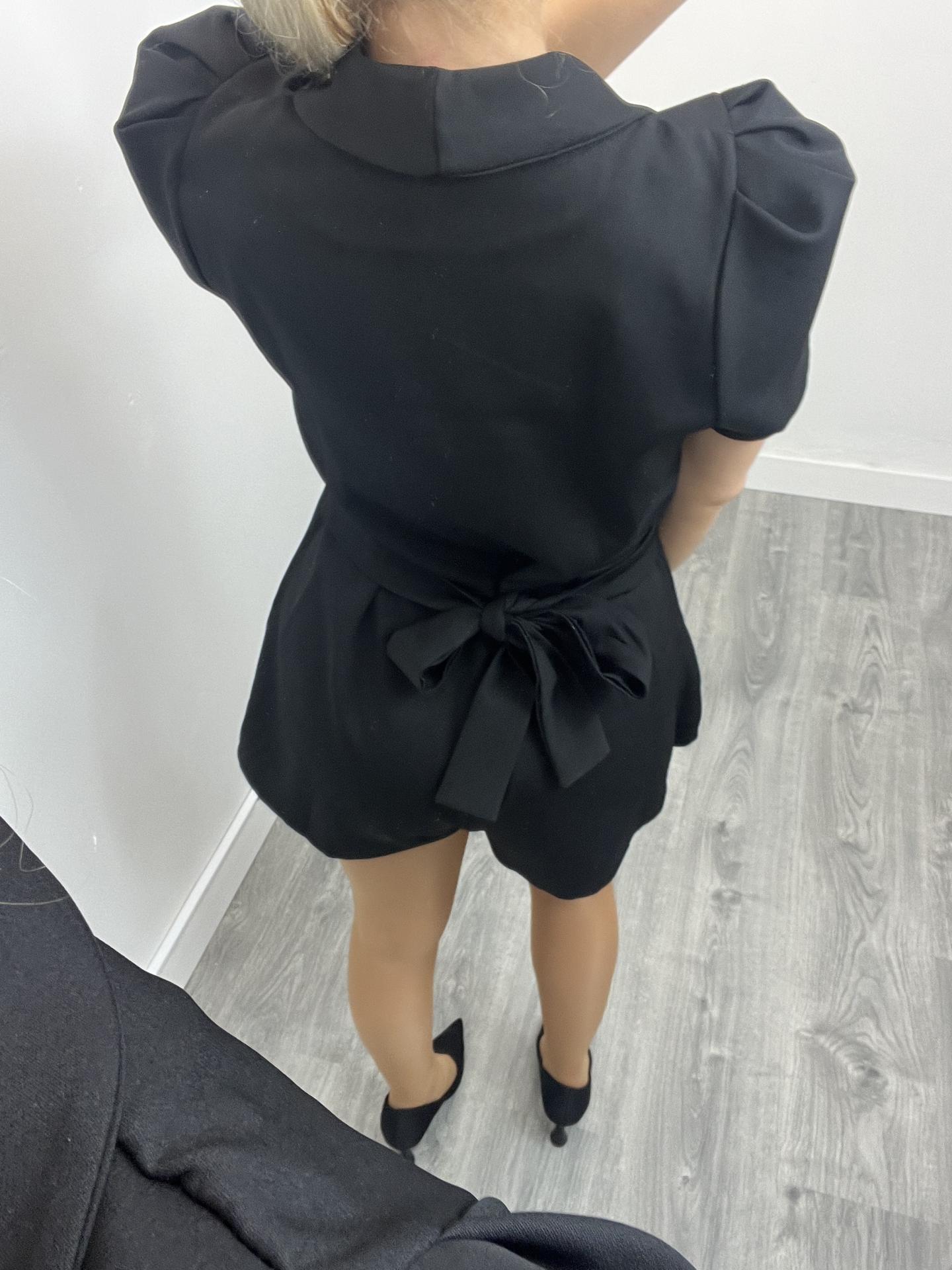 Mono corto negro elegante mujer estilo blazer con lazada