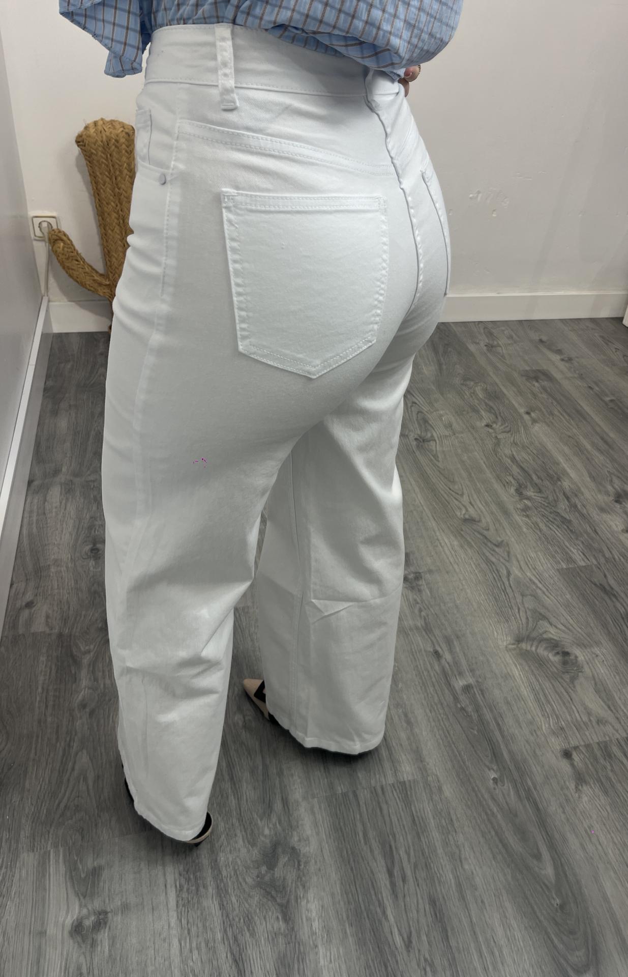 Pantalón Wide Leg Blanco de Tiro Alto Súper Elástico