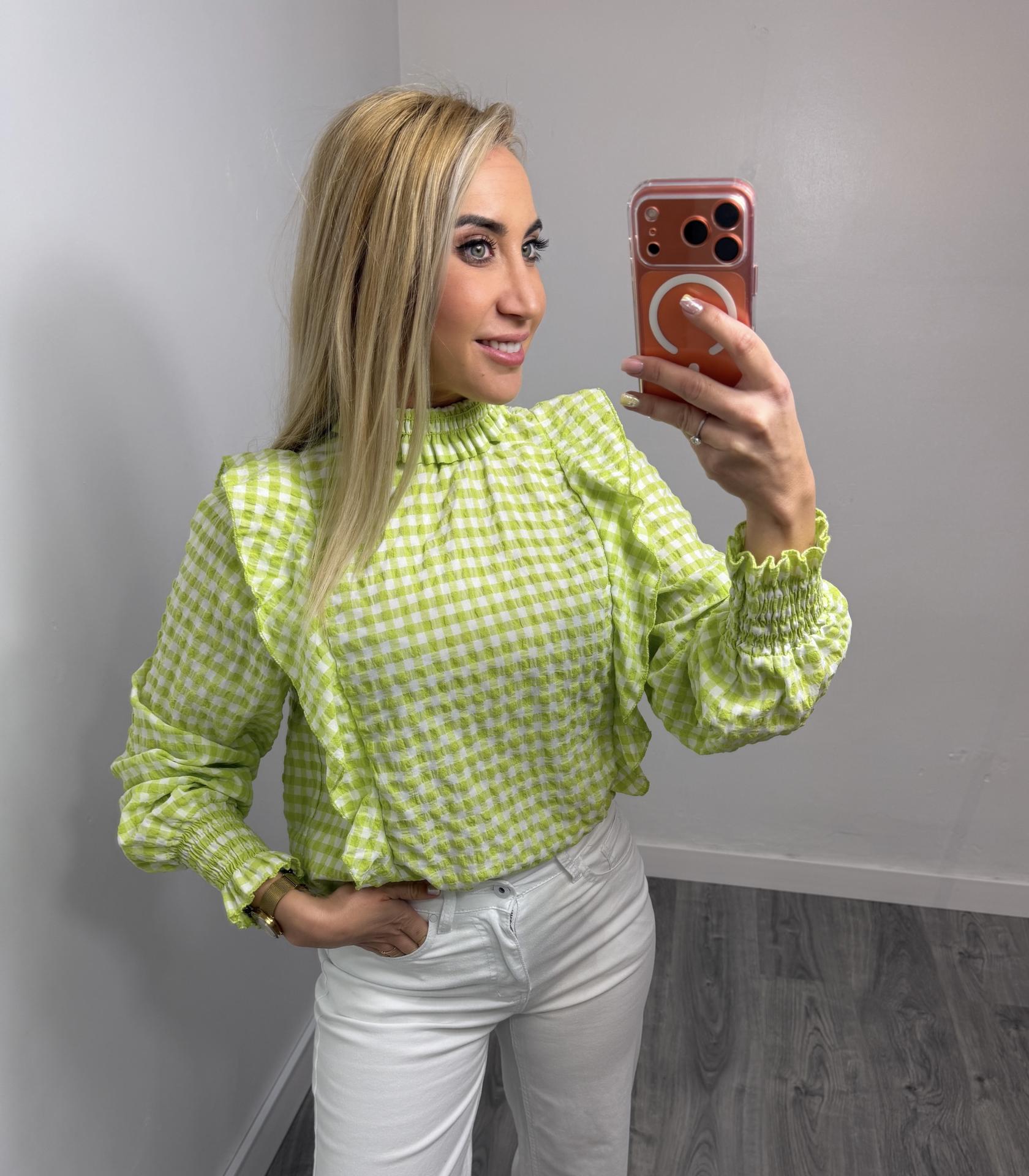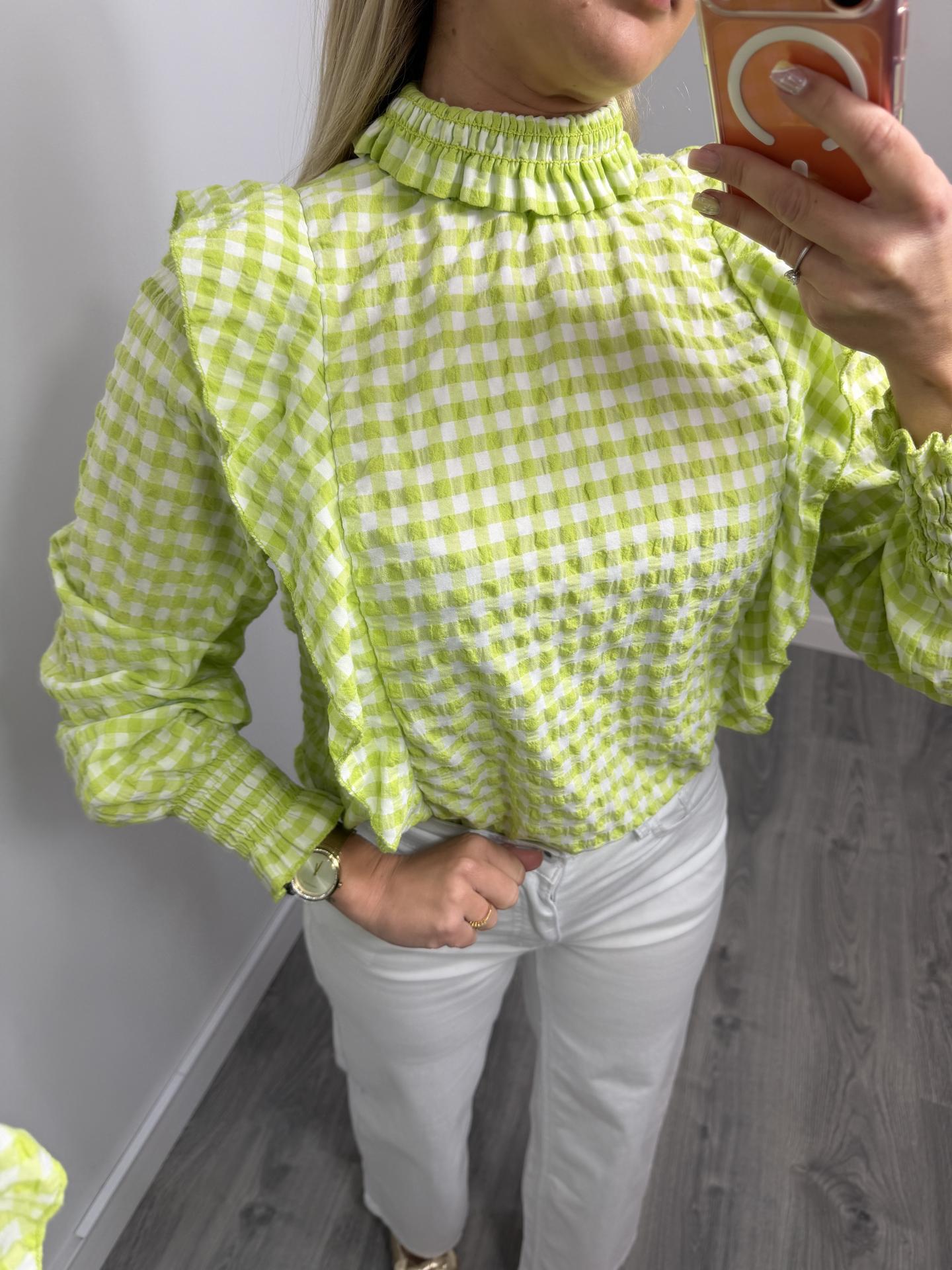 Blusa verde vichy con volantes mujer – manga larga