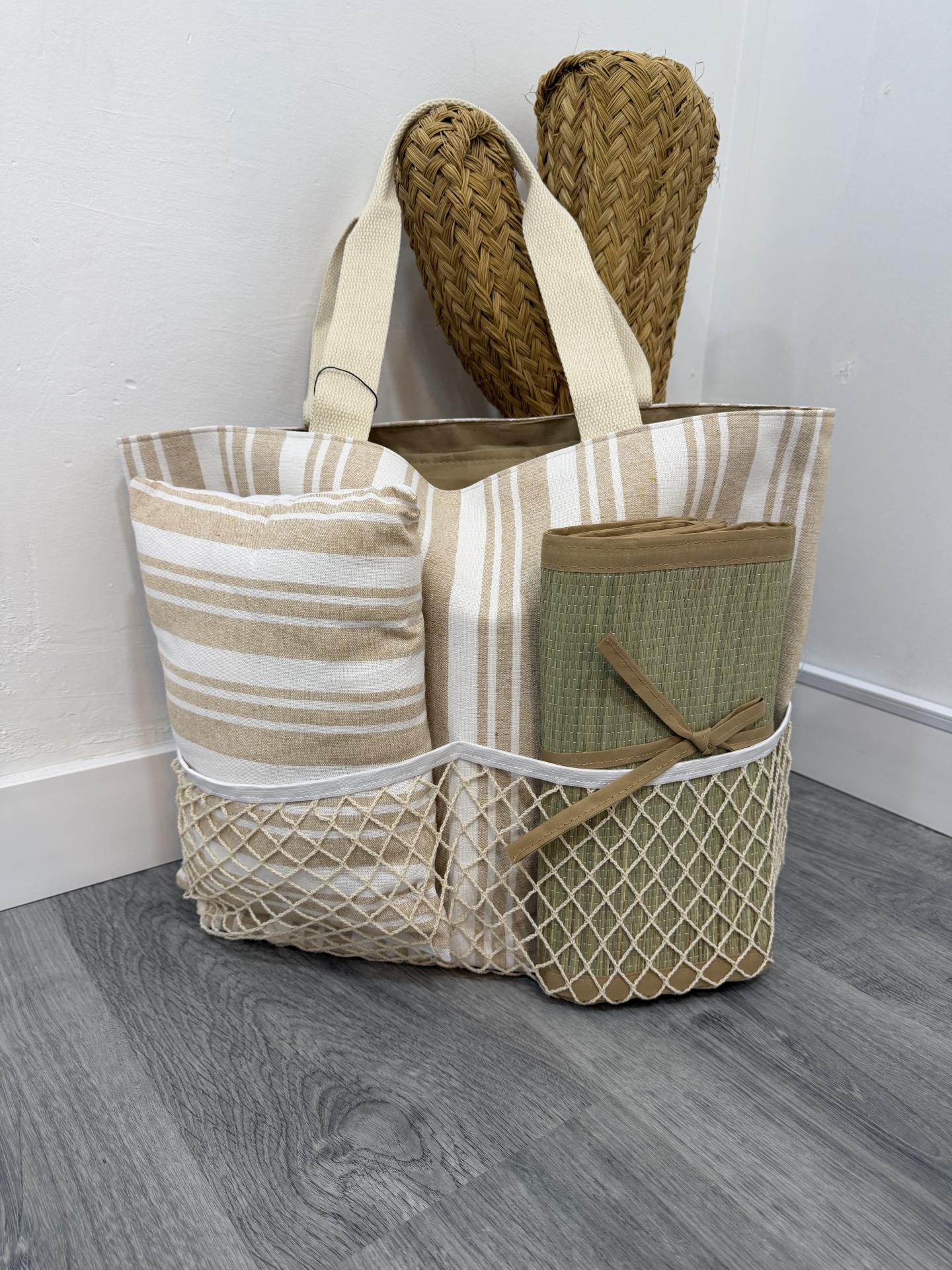 Bolso de Playa con Esterilla y Almohada | Bolso 3 en 1 Verano | Malika Beige porque los miércoles
