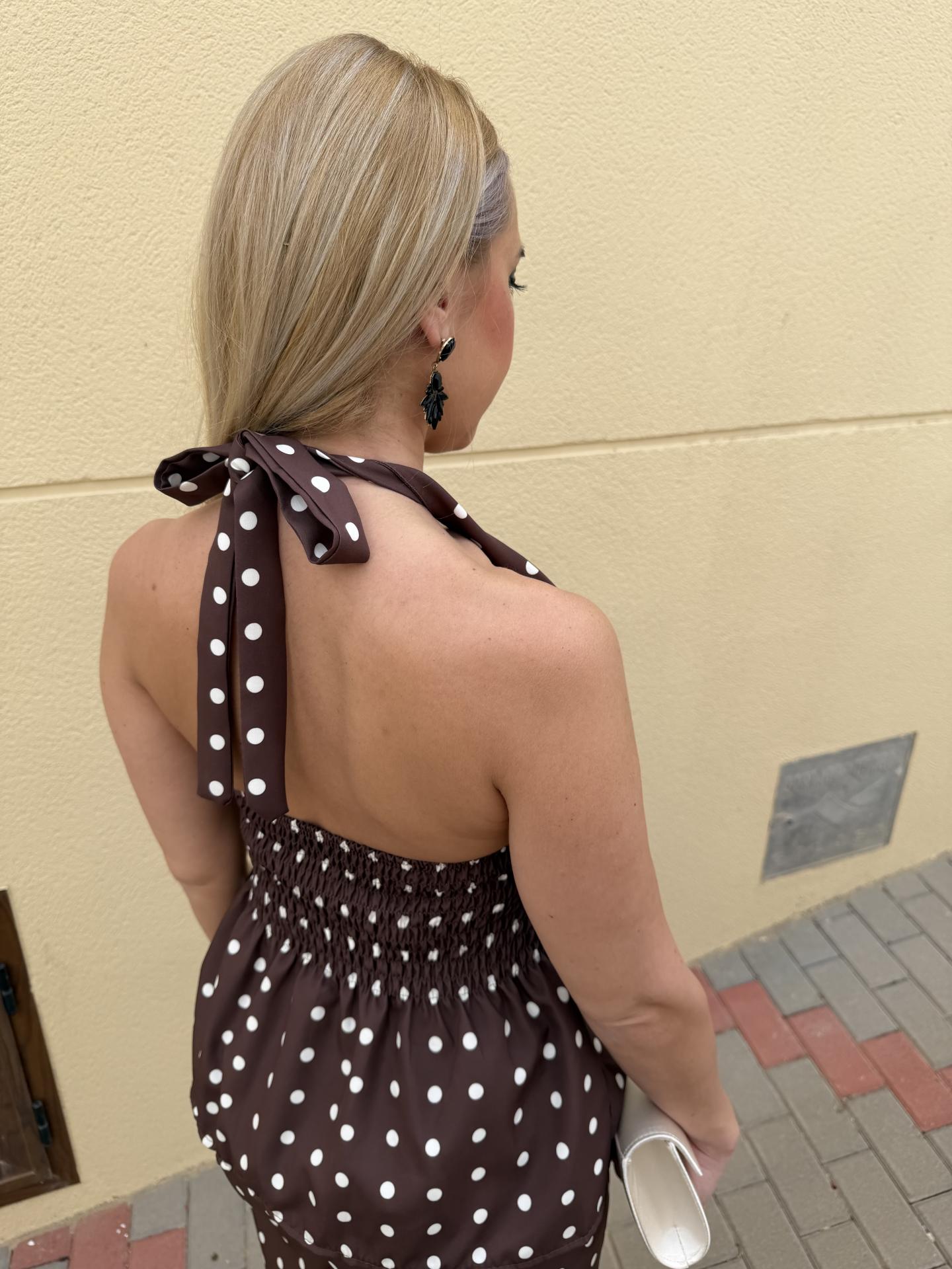 Conjunto de Lunares Marrón y Negro Mujer | Top Halter + Pantalón Palazzo