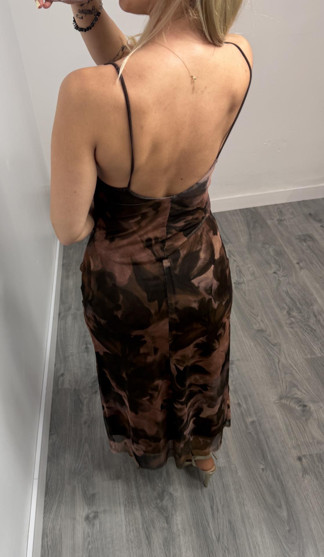 Nuestro vestido largo floral rosa es una apuesta segura esta temporada. Su diseño ajustado con tirantes finos realza la silueta y aporta un look sofisticado y moderno.