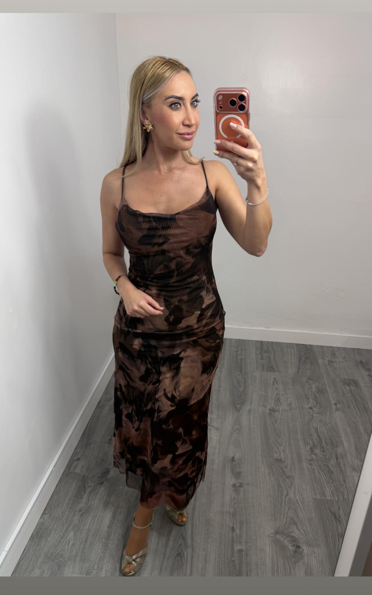 Vestido Midi Estampado Marrón Mujer Care