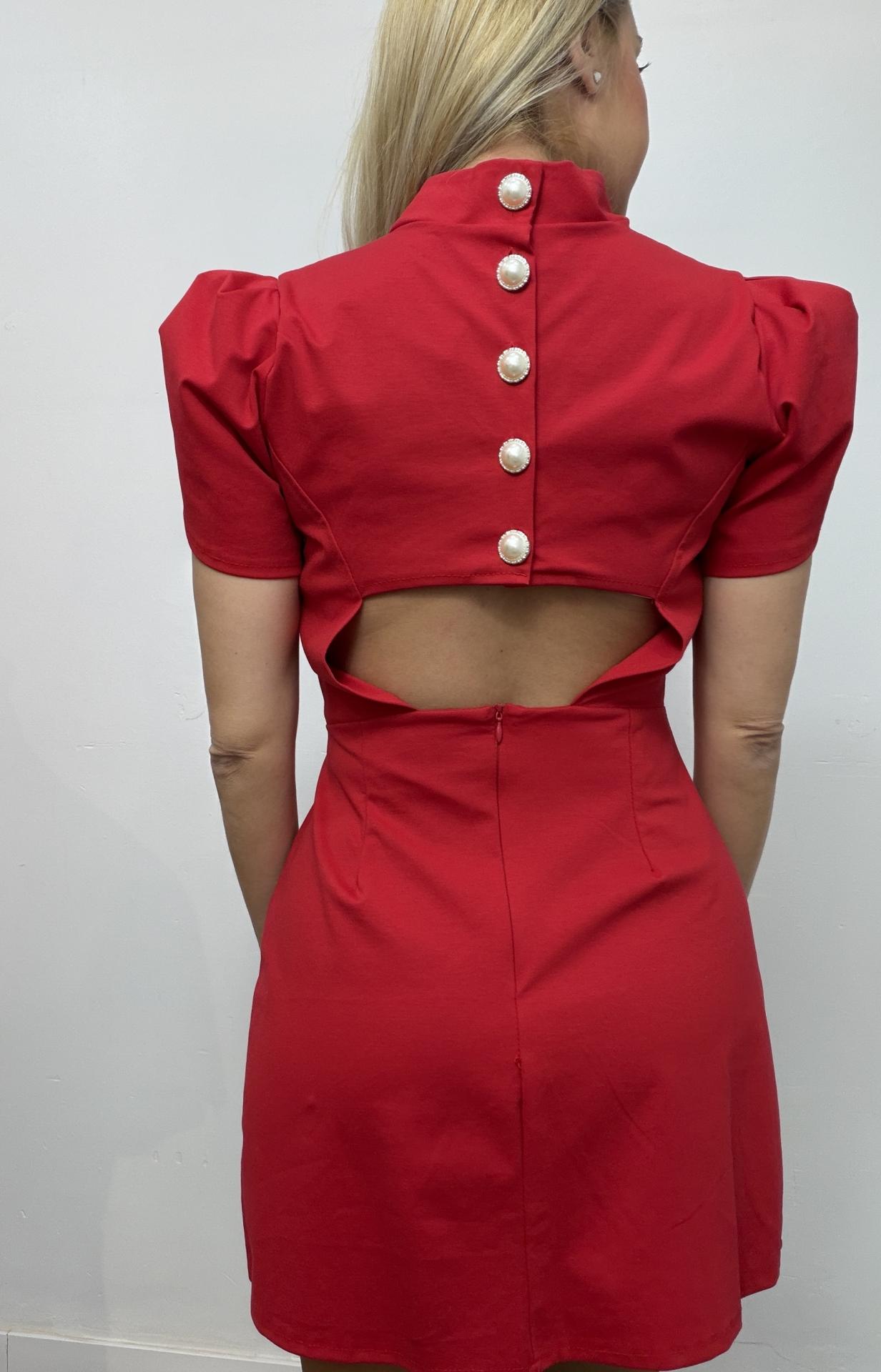 Vestido Elegante Corto Mujer con Espalda Abierta y Botones – Fiesta Rojo