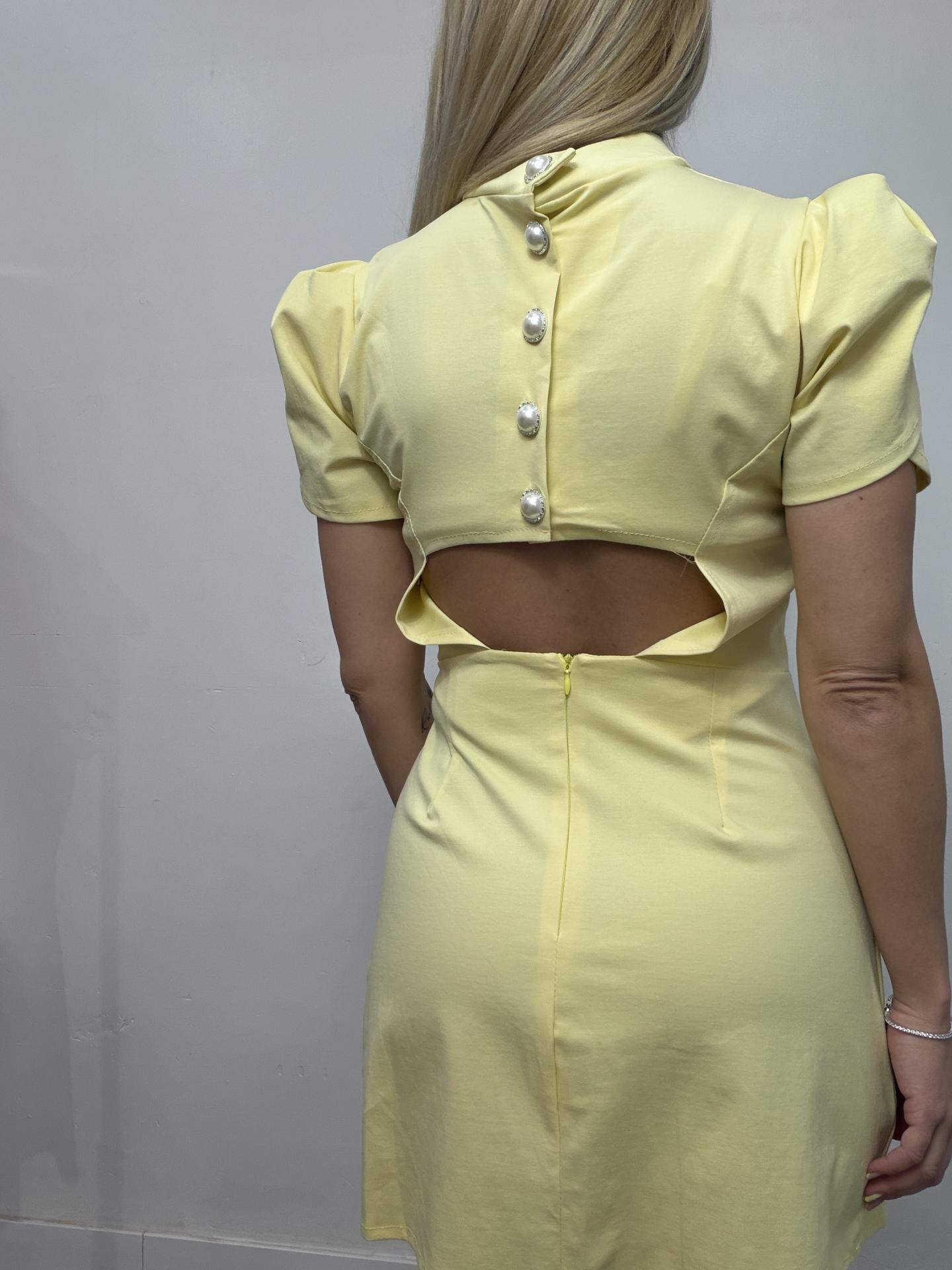 Vestido Elegante Corto Mujer con Espalda Abierta y Botones – Fiesta Amarillo